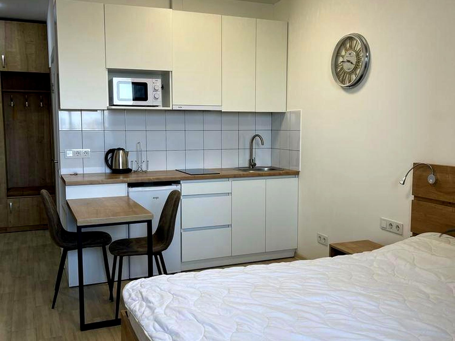 • Функціональна кухня з необхідною побутовою технікою (холодильник, плита).