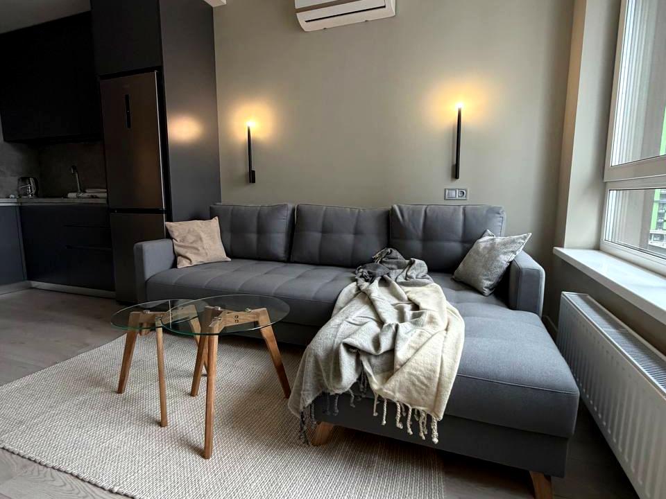 Дизайнерський ремонт Перша сдача. Пропонується в оренду сучасна 1-кімнатна квартира в ЖК Great, вул. Дніпровська набережна 15д. Новий сучасний ремонт, стильний інтер’єр та продуманий простір для комфортного проживання. Квартира розташована на 5 поверсі, з видом у двір . Площа — 48 м².