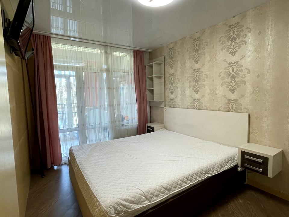 В квартире 2 комнаты, высота потолков 2.7 метра, Технологія будівництва - Блочна, Тип будинку - Спец. проект. Газа нет, кухонная плита электрическая. Есть балкон. В квартире есть Телевизор, Подогрев полов, Кондиционер, Стиральная машина, Ванна, Холодильник, Микроволновка, Посудомойная машина, Посуда. Дом построен в 2010 году. Общее состояние квартиры - С ремонтом. Горячая вода - централизованная. Количество санузлов: 1. Тип кухни - кухня-студия. Количество спален: 1. Комиссия за услуги 50 %