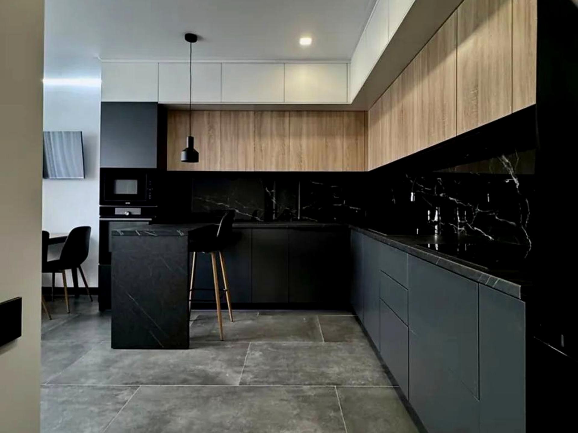 **Простора кухня-студія з великим диваном, який розкладається в двоспальне ліжко.