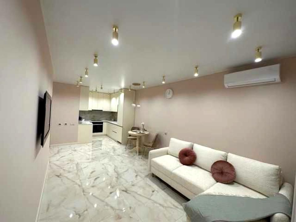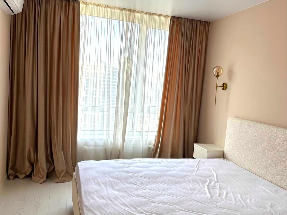 В квартире 1 комната, высота потолков 2.7 метра, Тип будинку - Спец. проект. Газа нет, кухонная плита электрическая. Балкона нет. В квартире есть Телевизор, Подогрев полов, Кондиционер, Стиральная машина, Ванна, Холодильник, Микроволновка, Посудомойная машина. Дом построен в 2022 году. Общее состояние квартиры - С ремонтом. Горячая вода - централизованная. Количество санузлов: 1. Интернет беспроводной. Работает без света - вода, отопление, интернет, лифт. Тип кухни - кухня-студия. Количество спален: 1. Нет подземного паркинга, доступного как укрытие. Инфраструктура территории: детская площадка, спортивная площадка, отделенная зона для выгула животных, двор без авто. Комиссия за услуги 50 %