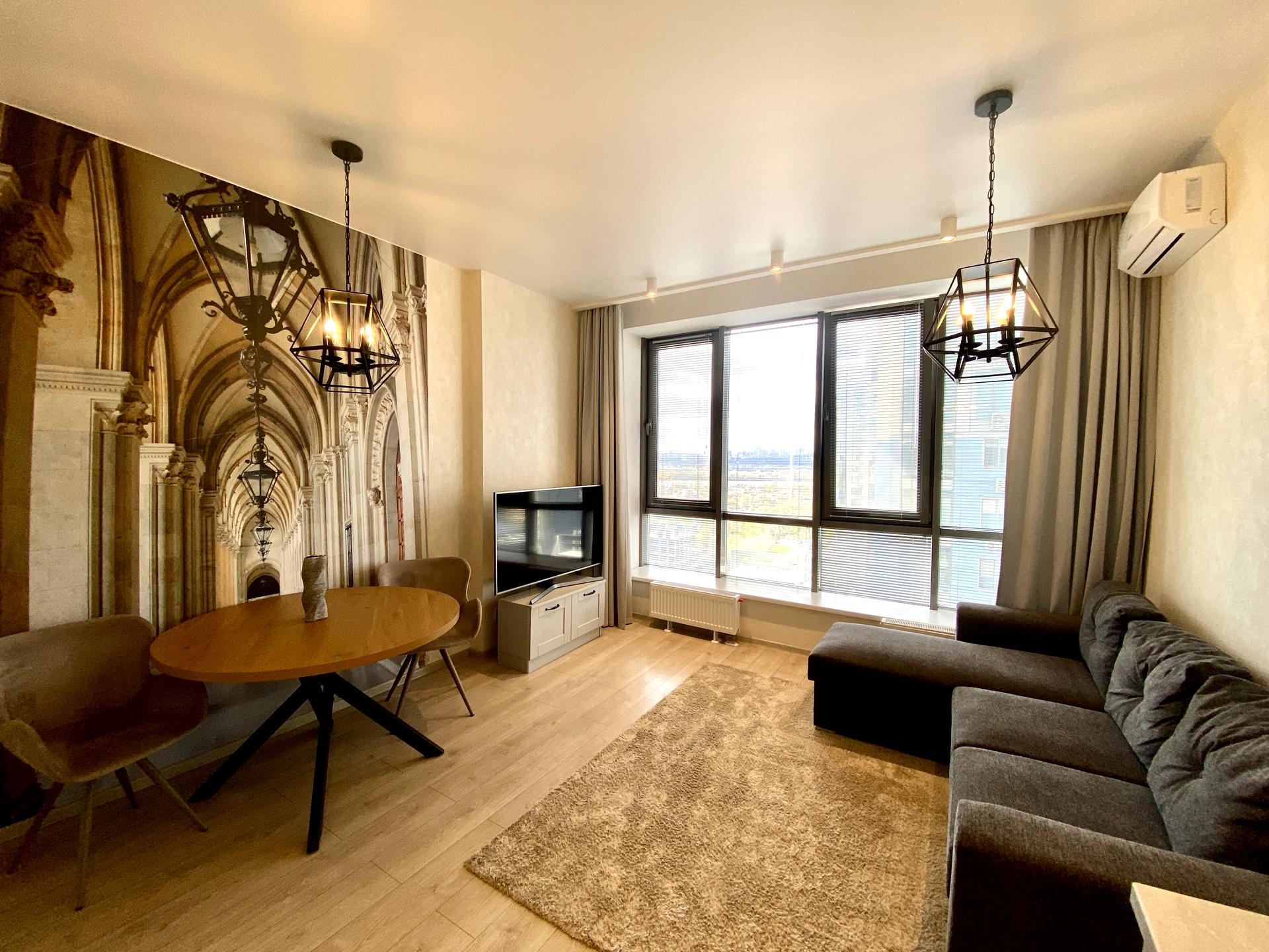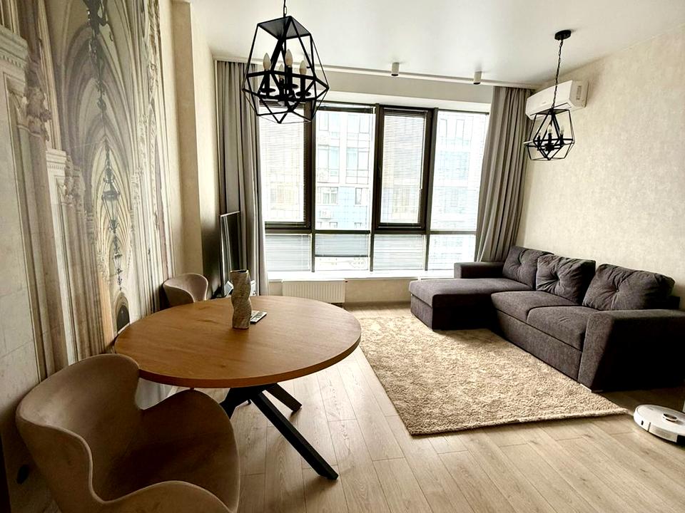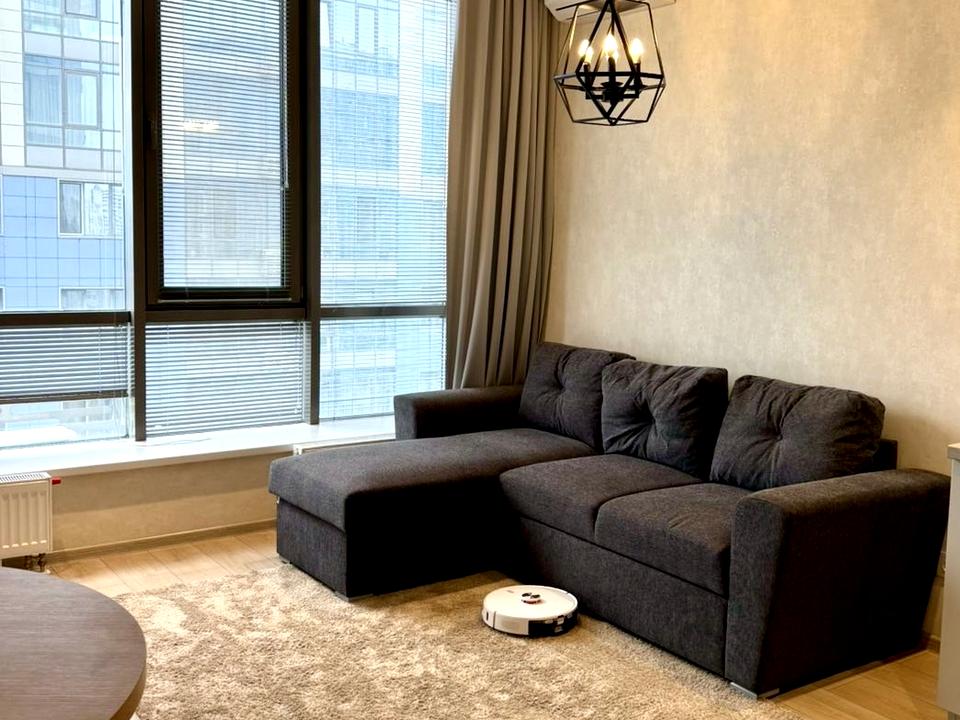 В квартире 1 комната, высота потолков 3.3 метра, Технологія будівництва - Монолітно-каркасна, Тип будинку - Спец. проект. Газа нет, кухонная плита электрическая. В квартире есть Телевизор, Кабельное ТВ, Кондиционер, Стиральная машина, Душевая кабина, Холодильник, Микроволновка, Посудомойная машина, Посуда. Дом построен в 2016 году. Общее состояние квартиры - С ремонтом. Безбарьерность: пандус, дверные проемы в доме шириной более 0.9 м. Горячая вода - централизованная. Количество санузлов: 1. Интернет оптоволоконный. Работает без света - вода, отопление, интернет, лифт. Тип кухни - кухня-студия. Количество спален: 1. Есть подземный паркинг, доступный как укрытие. Инфраструктура территории: детская площадка, спортивная площадка, двор без авто
