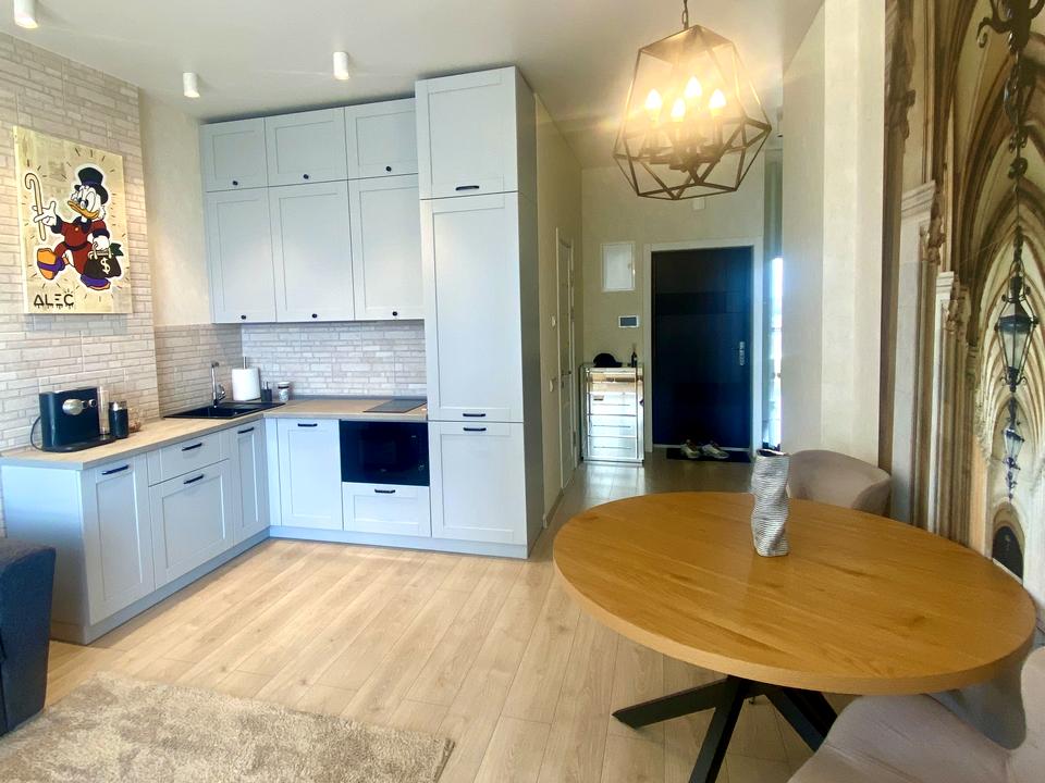 Велика кухня-студія із зоною відпочинку та обідньою частиною для приготування іжі, сучасний санвузол з новою душовою кабіною та окремою гардеробною, яка дозволяє зручно організувати зберігання речей без зайвих шкафів у кімнатах. Квартира повністю мебльована та оснащена всією побутовою технікою, включаючи: