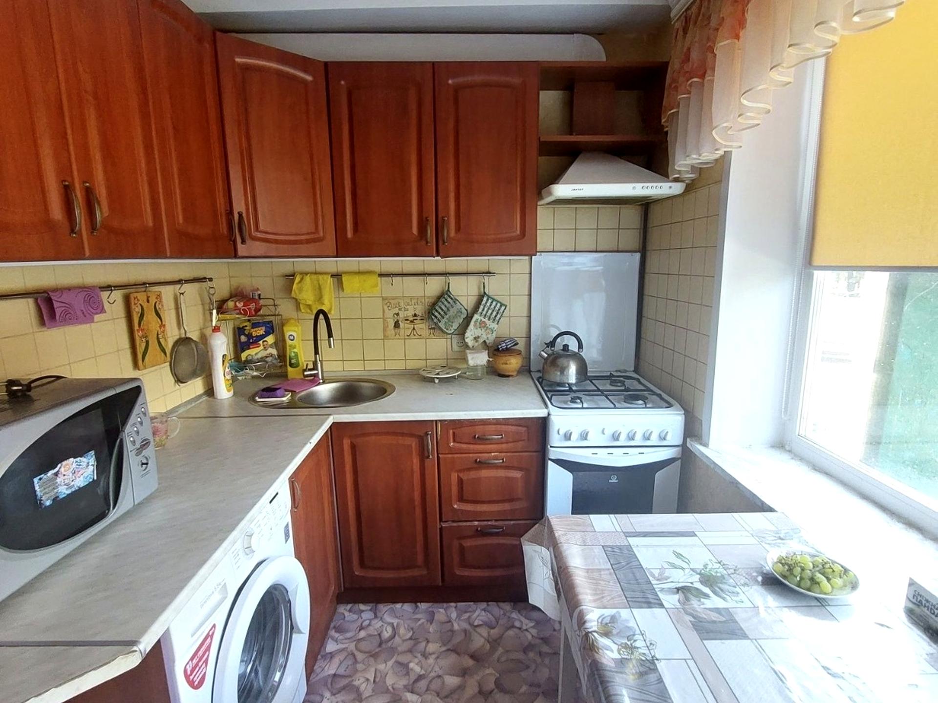 В квартире 2 комнаты, высота потолков 2.5 метра, Технологія будівництва - Панельна, Тип будинку - Хрущівка. Есть газ, кухонная плита газовая. Балкона нет. В квартире есть Стиральная машина, Ванна, Холодильник, Микроволновка, Посуда. Дом построен в 1963 году. Общее состояние квартиры - С ремонтом. Количество санузлов: 1. Тип кухни - отдельная кухня. Количество спален: 1. Инфраструктура территории: детская площадка, спортивная площадка. Комиссия за услуги 50 %