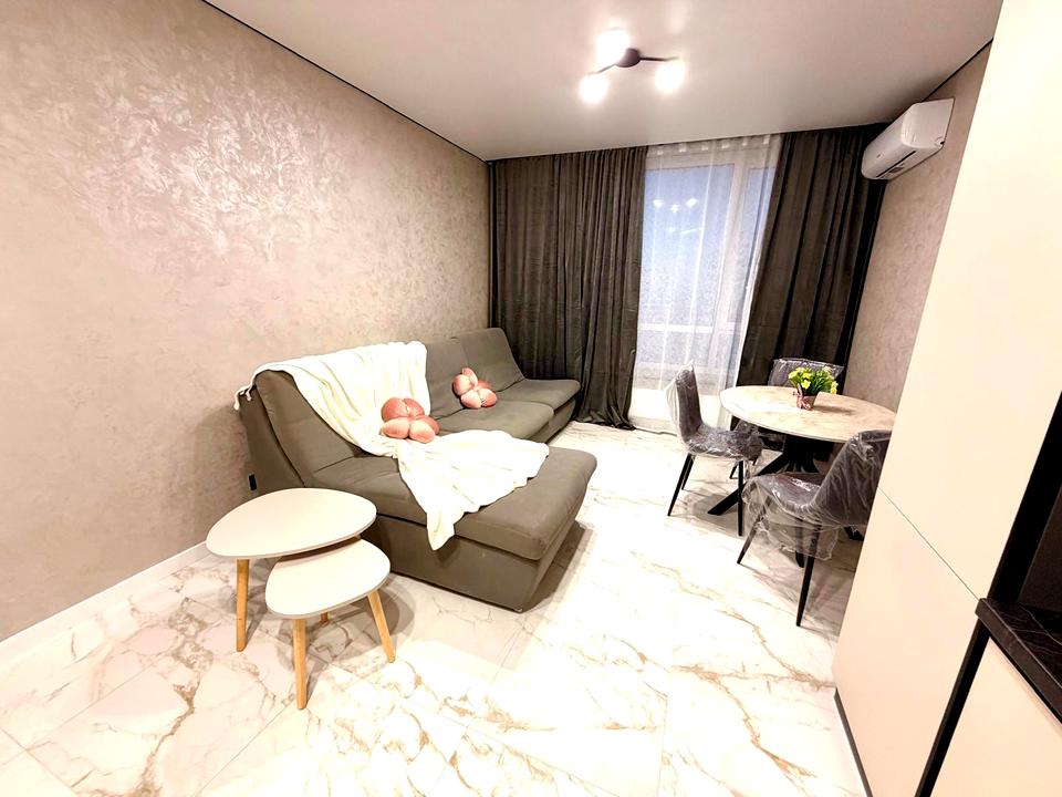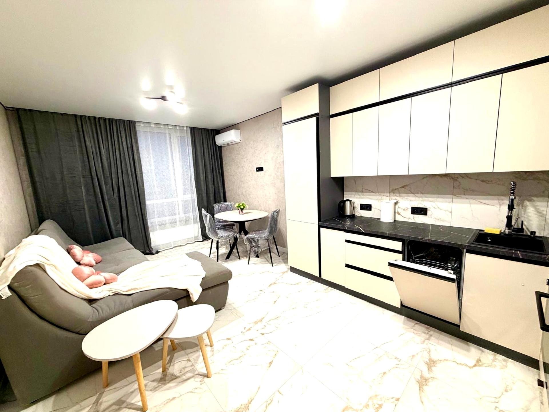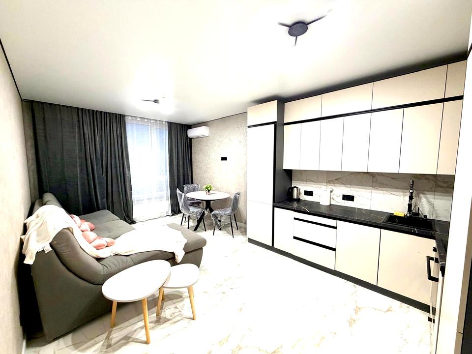 В квартире 1 комната, высота потолков 2.7 метра, Технологія будівництва - Монолітно-каркасна, Тип будинку - Спец. проект. Газа нет, кухонная плита электрическая. В квартире есть Кабельное ТВ, Спутниковое ТВ, Кондиционер, Стиральная машина, Сушильная машина, Душевая кабина, Холодильник, Посудомойная машина. Дом построен в 2022 году. Общее состояние квартиры - С ремонтом. Безбарьерность: вход в дом на уровне земли, парковочные места для людей з инвалидностью, лифт, приспособленный к инвалидной коляске. Горячая вода - централизованная. Количество санузлов: 1. Интернет оптоволоконный. Работает без света - вода, отопление, интернет, лифт, резервное питание квартиры (акумуляторы). Тип кухни - отдельная кухня. Количество спален: 1. Есть подземный паркинг, доступный как укрытие. Инфраструктура территории: детская площадка, спортивная площадка, отделенная зона для выгула животных