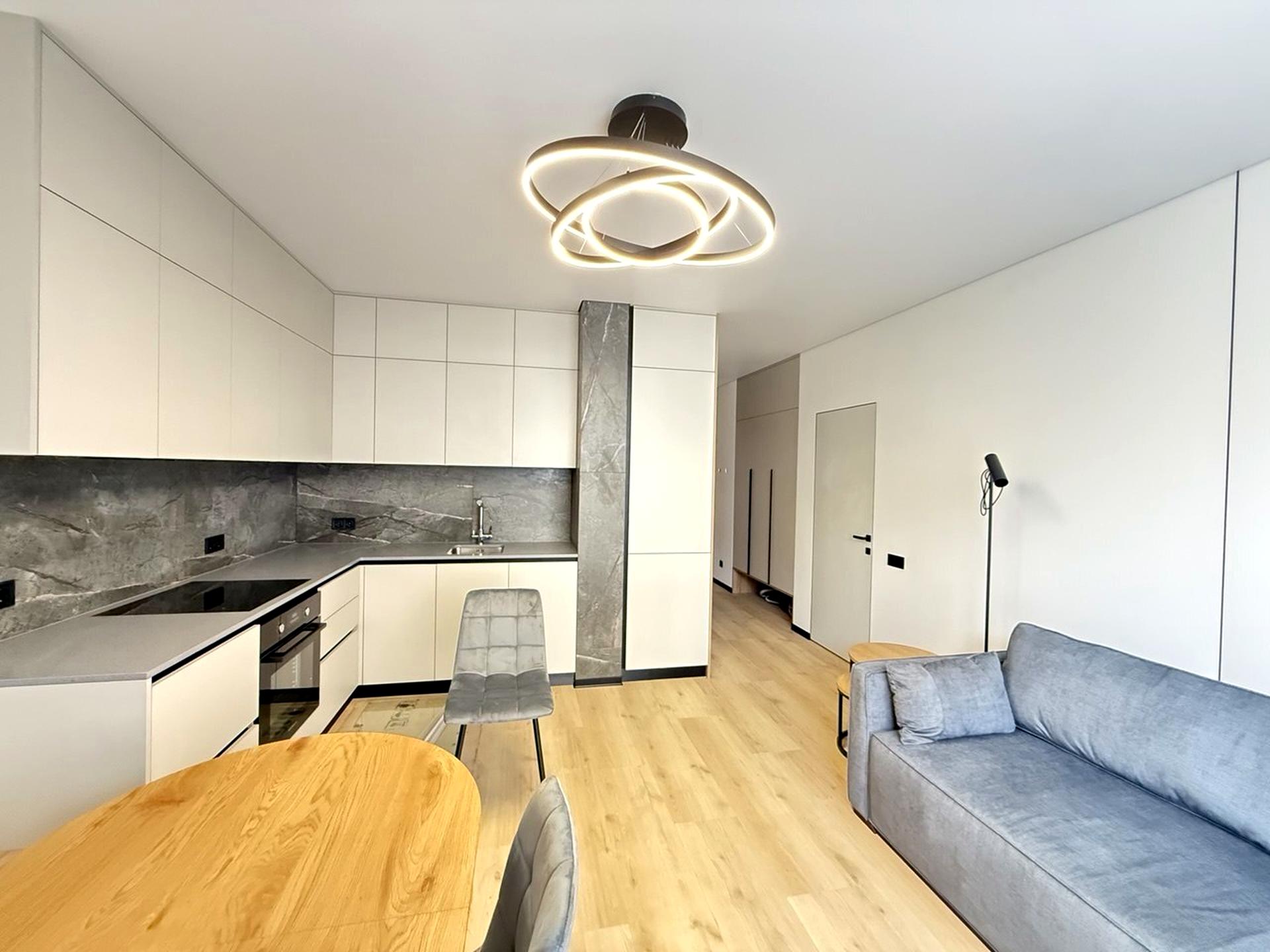 Повна комплектація: Квартира облаштована новими меблями та сучасною побутовою технікою від провідних світових брендів.