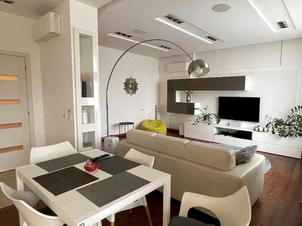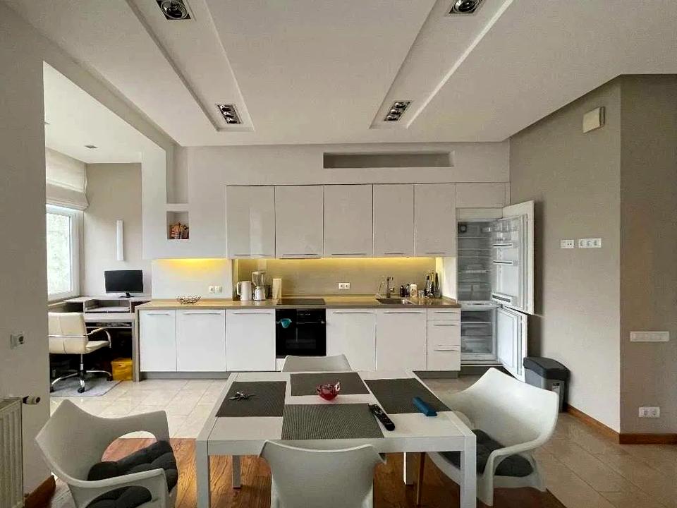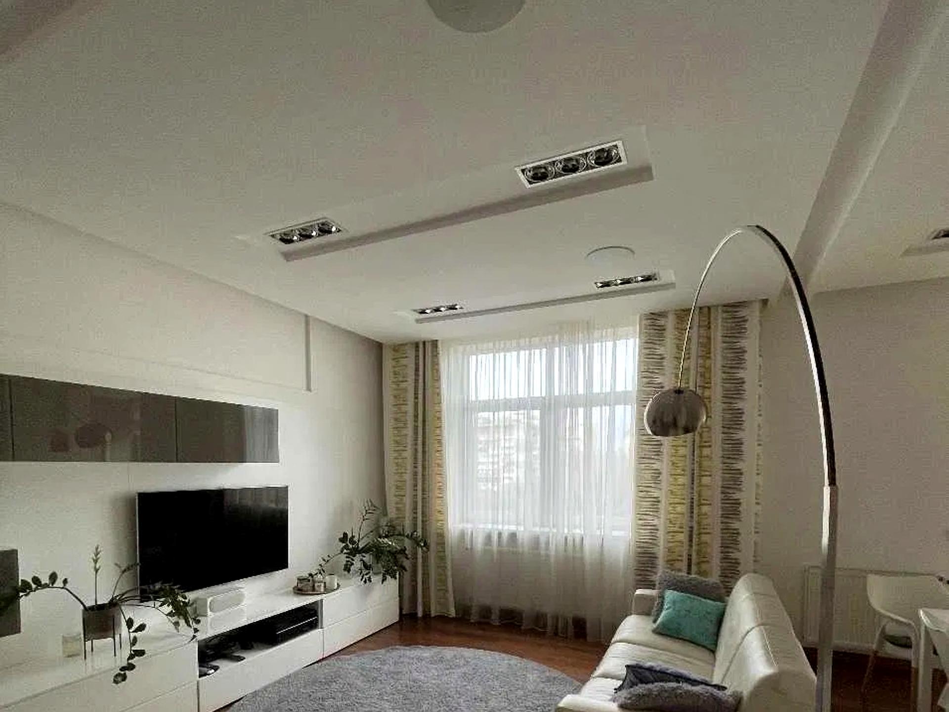 В квартирі -кухня- студіо з робочим місцем, спальня, 2 санвузли, засклена лоджия. Багато місця для зберігання. Підлога з підігрівом, бойлери на гарячу воду, кондиціонери, пральна та сушильна машини AEG, індукційна варильна поверхня, духова шафа, СВЧ, посудомийна машина, холодильник, домашній кінотеатр Yamaha з сабвуфером (4 колонки+ 2 вмонтовані), телевізор Samsung з тюнером. Очистка води + додатково очистка для питної води. Порохотяг, праска, електрочайник. Інтернет-оптоволокно. Лічильники на опалення, холодну і гарячу воду, електрику (день/ніч). Консьєрж, охорона.