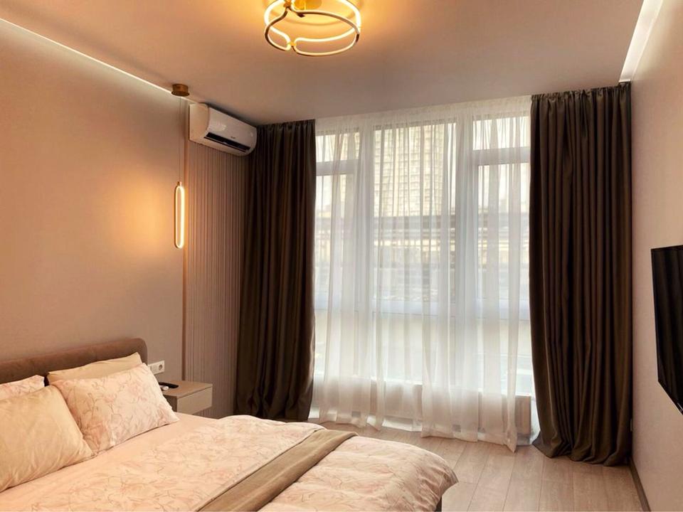В квартире 1 комната, высота потолков 2.85 метра, Технологія будівництва - Монолітно-каркасна, Тип будинку - Спец. проект. В квартире есть Телевизор, Кондиционер, Стиральная машина, Холодильник, Посудомойная машина, Посуда. Дом построен в 2017 году. Общее состояние квартиры - С ремонтом. Работает без света - вода, отопление, лифт. Комиссия за услуги 50 %