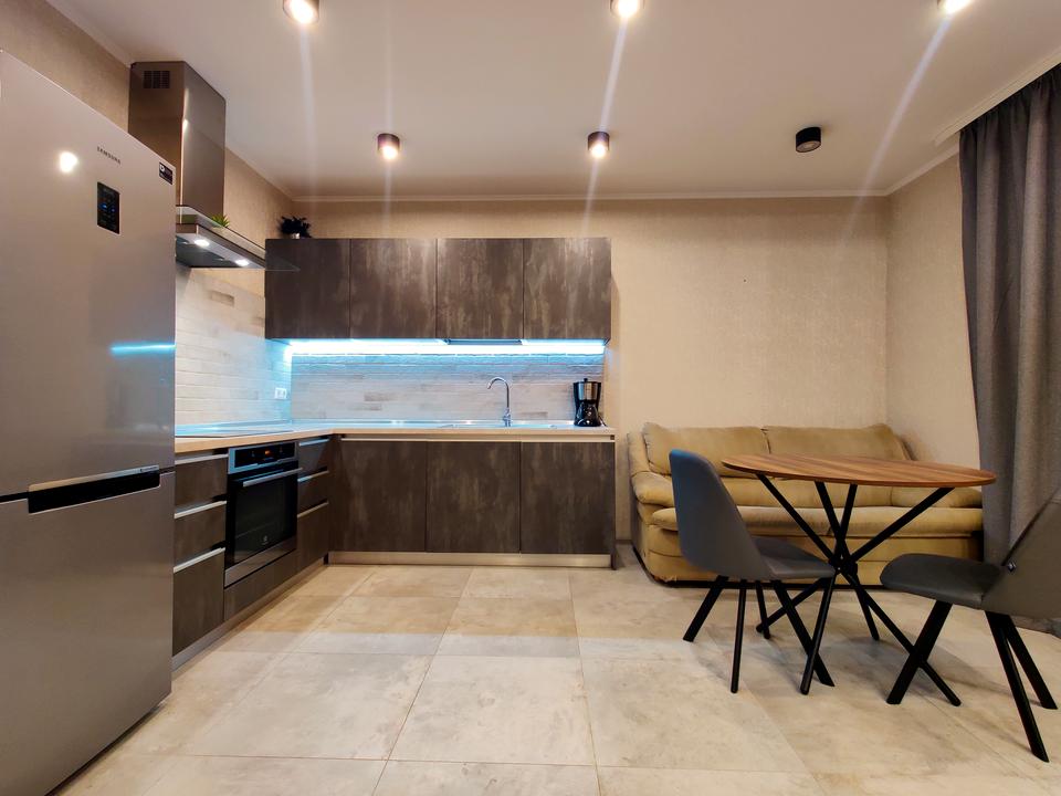 В квартире 1 комната, Технологія будівництва - Монолітно-каркасна. Планировка комнат Студия. Газа нет. Есть балкон. Общее состояние квартиры - С ремонтом. Горячая вода - централизованная. Количество санузлов: 1. Интернет оптоволоконный. Тип кухни - кухня-студия. Количество спален: 1. Есть подземный паркинг, доступный как укрытие. Комиссия за услуги 50 %