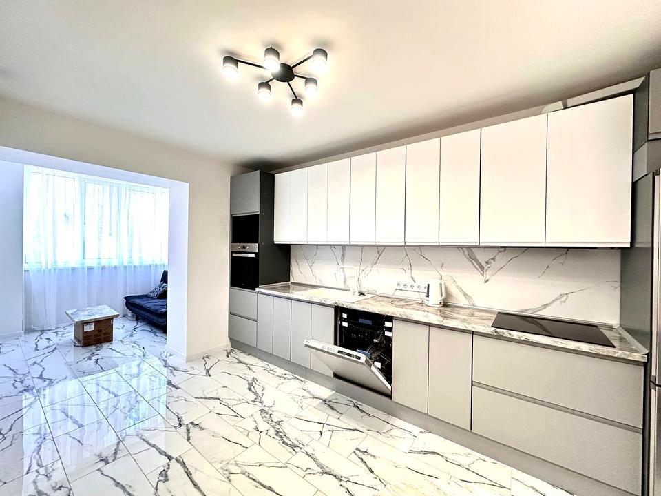 *Величезна простора вітальня суміжна з кухнею, яка включає в себе всю побутову техніку, посудомийну машину, духову шафу, мікрохвильову піч, холодильник, буде встановлено кондиціонери