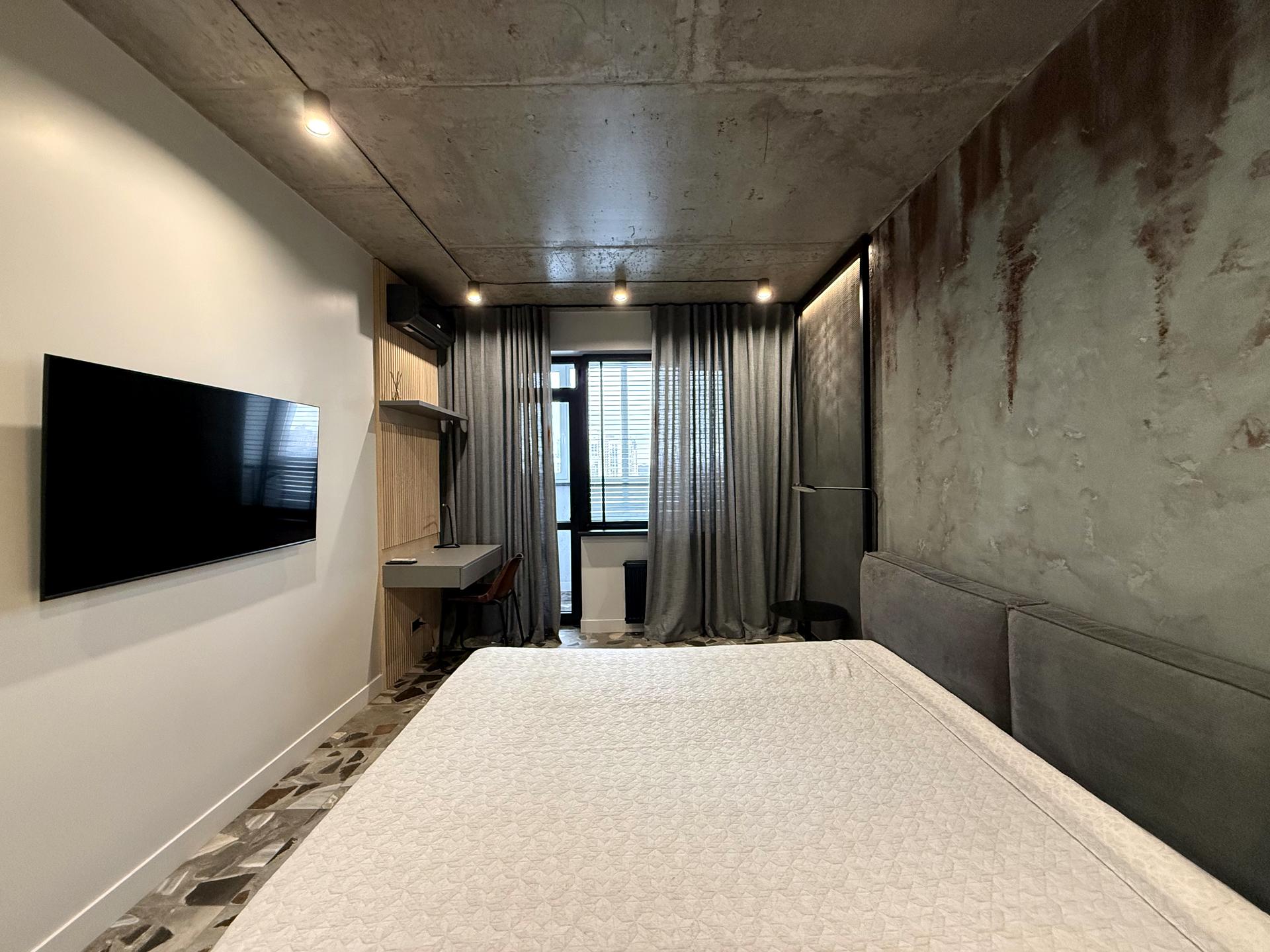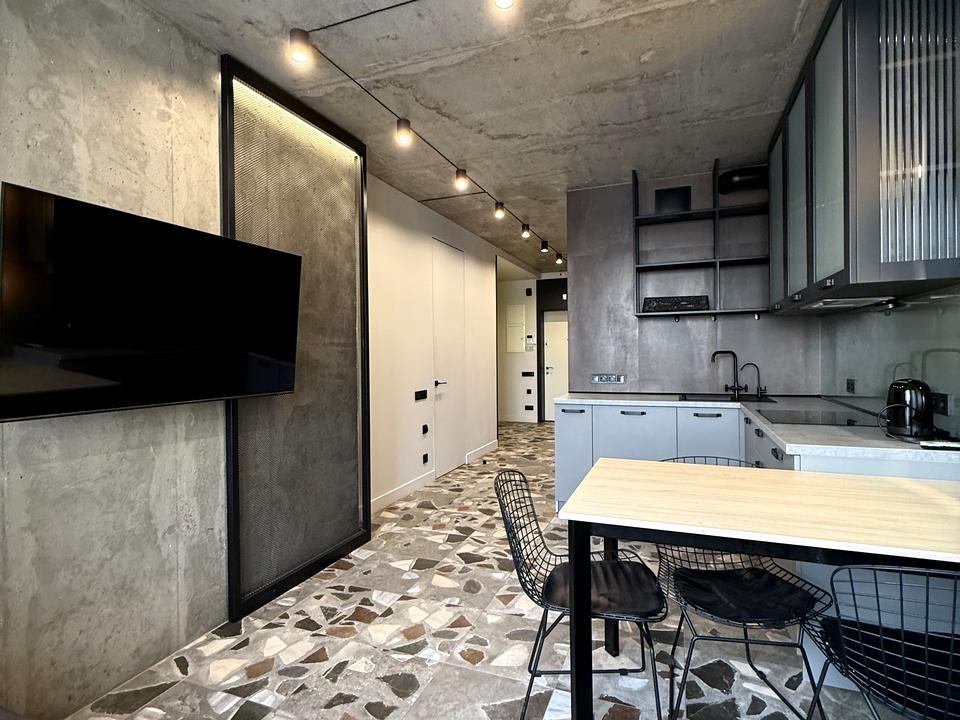 В квартире 2 комнаты, высота потолков 3 метра, Технологія будівництва - Монолітно-каркасна, Тип будинку - Спец. проект. Планировка комнат Раздельная. Газа нет, кухонная плита электрическая. Есть балкон. В квартире есть Телевизор, Утюг, Подогрев полов, Кондиционер, Стиральная машина, Душевая кабина, Холодильник, Микроволновка, Посудомойная машина, Посуда. Дом построен в 2018 году. Общее состояние квартиры - С ремонтом. Горячая вода - электрический бойлер. Количество санузлов: 1. Интернет оптоволоконный. Работает без света - вода, отопление, интернет, лифт. Тип кухни - кухня-студия. Количество спален: 1. Без комиссии