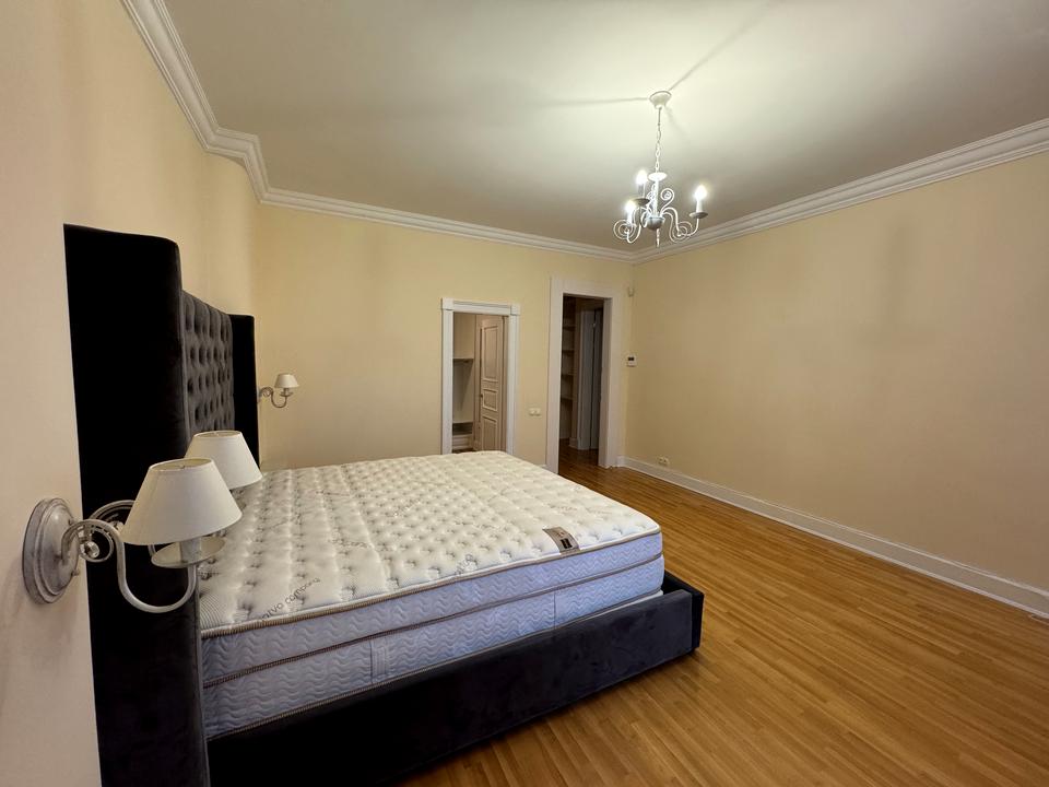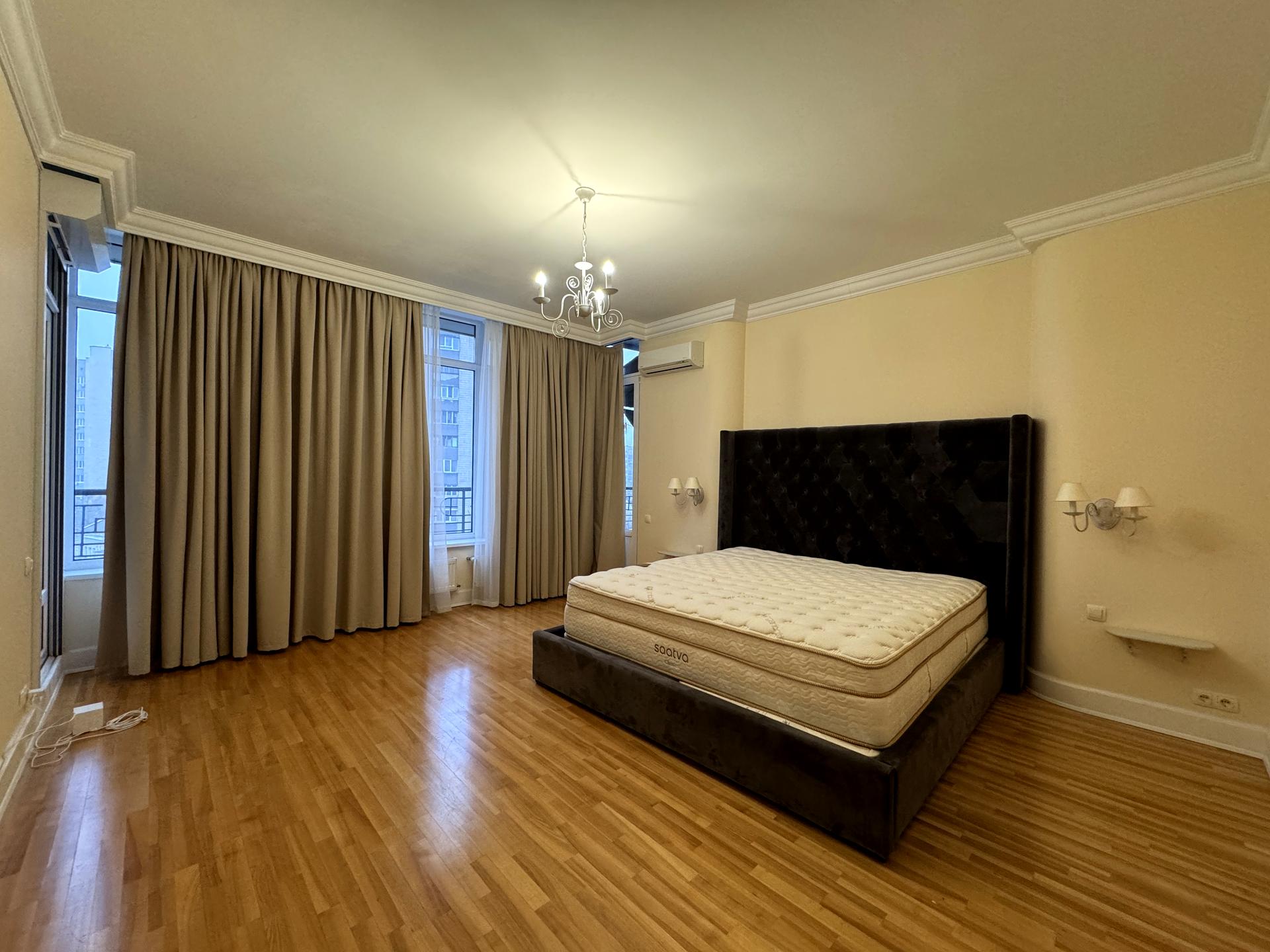 Охоронна сигналізація, жалюзі на всіх вікнах, броньовані вхідні двері. Кухня повністю обладнана всією технікою. Ванна та туалет кімната обладнані - бойлер води гарячої. 3 відкриті балкони та 1 засклений. Кондиціонери в кожній кімнаті. Фільтри очищення води. Чотири кімнати, два санвузли, гардеробна, господарча кімната. На підлозі паркет. Дерев'яна столярка.
