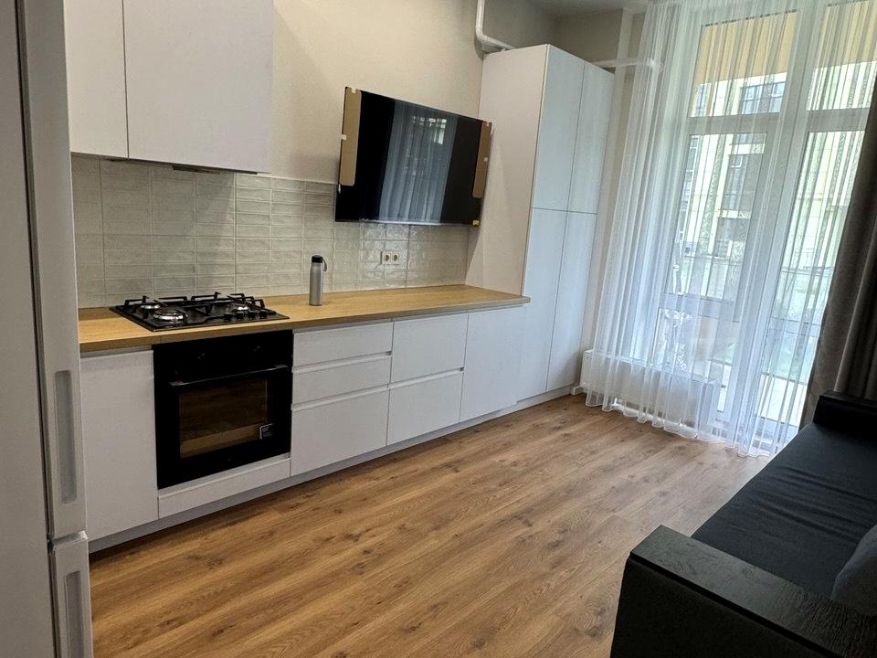 В квартире 1 комната, высота потолков 3.2 метра, Технологія будівництва - Цегляна, Тип будинку - Спец. проект. Есть газ, кухонная плита газовая. Есть балкон. В квартире есть Телевизор, Кабельное ТВ, Кондиционер, Стиральная машина, Ванна, Холодильник, Посудомойная машина. Дом построен в 2021 году. Общее состояние квартиры - С ремонтом. Горячая вода - газовая колонка. Количество санузлов: 1. Работает без света - вода, газ, отопление, интернет, лифт, резервное питание квартиры (акумуляторы). Тип кухни - кухня-студия. Количество спален: 1. Есть подземный паркинг, доступный как укрытие. Инфраструктура территории: детская площадка, спортивная площадка. Комиссия за услуги 48 %