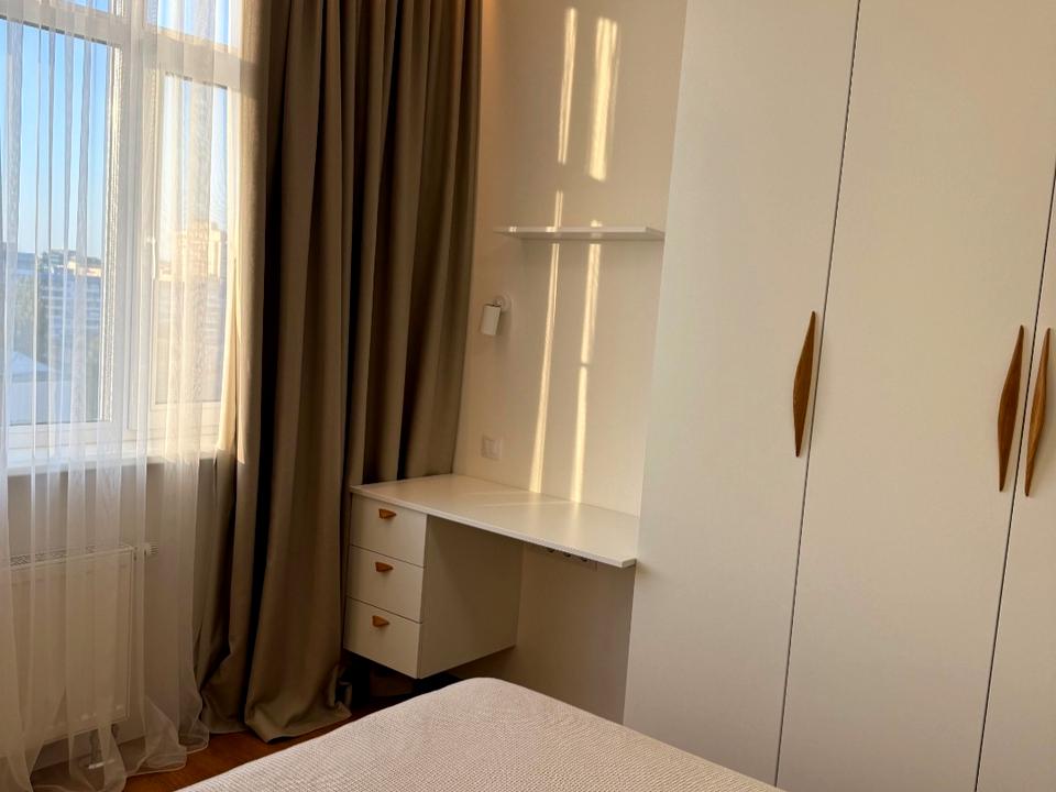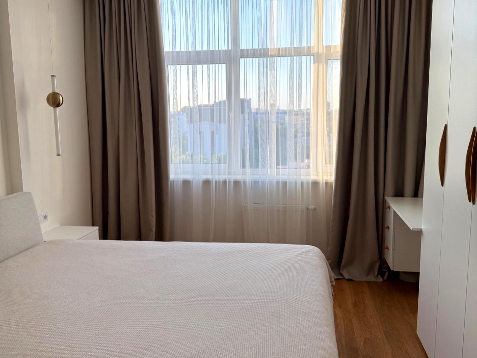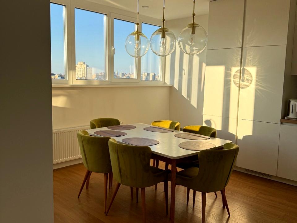 Планування: Кухня-вітальня для спільних вечорів та дві затишні спальні для відновлення сил. 12-й поверх дарує чудовий краєвид і тишу.