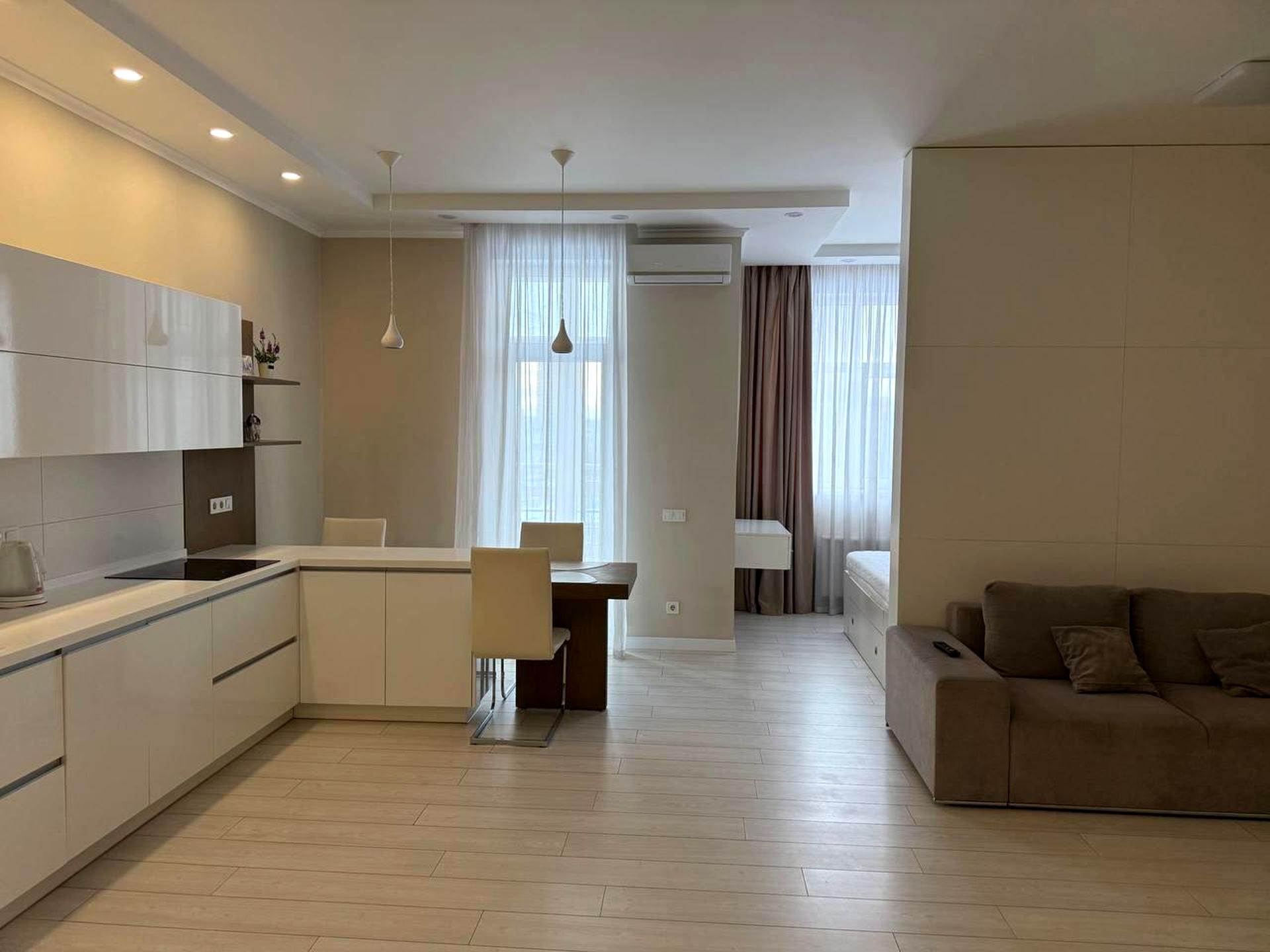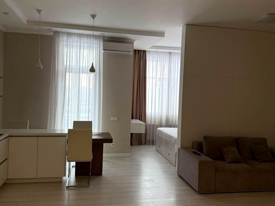 В квартире 1 комната, высота потолков 3 метра, Технологія будівництва - Монолітно-каркасна, Тип будинку - Спец. проект. Газа нет, кухонная плита электрическая. Дом построен в 2014 году. Общее состояние квартиры - С ремонтом. Количество санузлов: 1. Работает без света - вода, отопление, интернет, лифт. Тип кухни - кухня-студия. Количество спален: 1. Есть подземный паркинг, доступный как укрытие. Комиссия за услуги 15000 грн