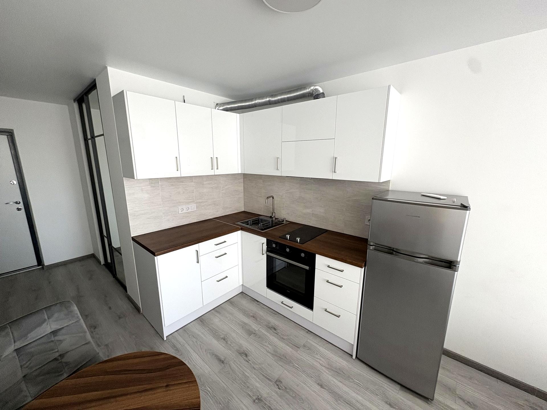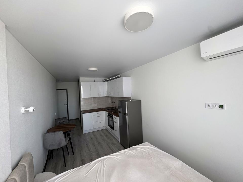 В квартире 1 комната, высота потолков 2.7 метра, Технологія будівництва - Блочна, Тип будинку - Спец. проект. Газа нет, кухонная плита электрическая. Балкона нет. Дом построен в 2023 году. Общее состояние квартиры - С ремонтом. Горячая вода - электрический бойлер. Количество санузлов: 1. Работает без света - вода, отопление, интернет, лифт. Тип кухни - кухня-студия. Количество спален: 1. Инфраструктура территории: детская площадка, двор без авто. Комиссия за услуги 50 %