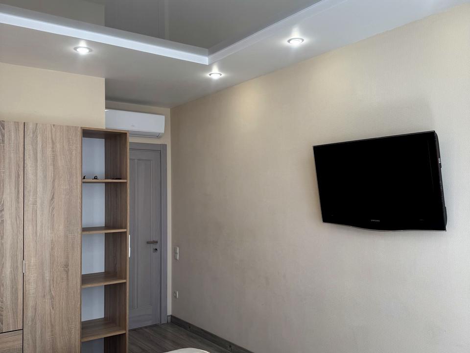 В квартире 2 комнаты, высота потолков 3 метра, Тип будинку - Спец. проект. Газа нет, кухонная плита электрическая. Есть балкон. В квартире есть Телевизор, Кабельное ТВ, Кондиционер, Стиральная машина, Ванна, Холодильник, Посудомойная машина. Дом построен в 2022 году. Общее состояние квартиры - С ремонтом. Горячая вода - электрический бойлер. Количество санузлов: 1. Интернет проводной (кабельный). Работает без света - вода, отопление, интернет, лифт. Тип кухни - кухня-студия. Количество спален: 2. Есть подземный паркинг, доступный как укрытие. Инфраструктура территории: детская площадка, спортивная площадка. Комиссия за услуги 50 %