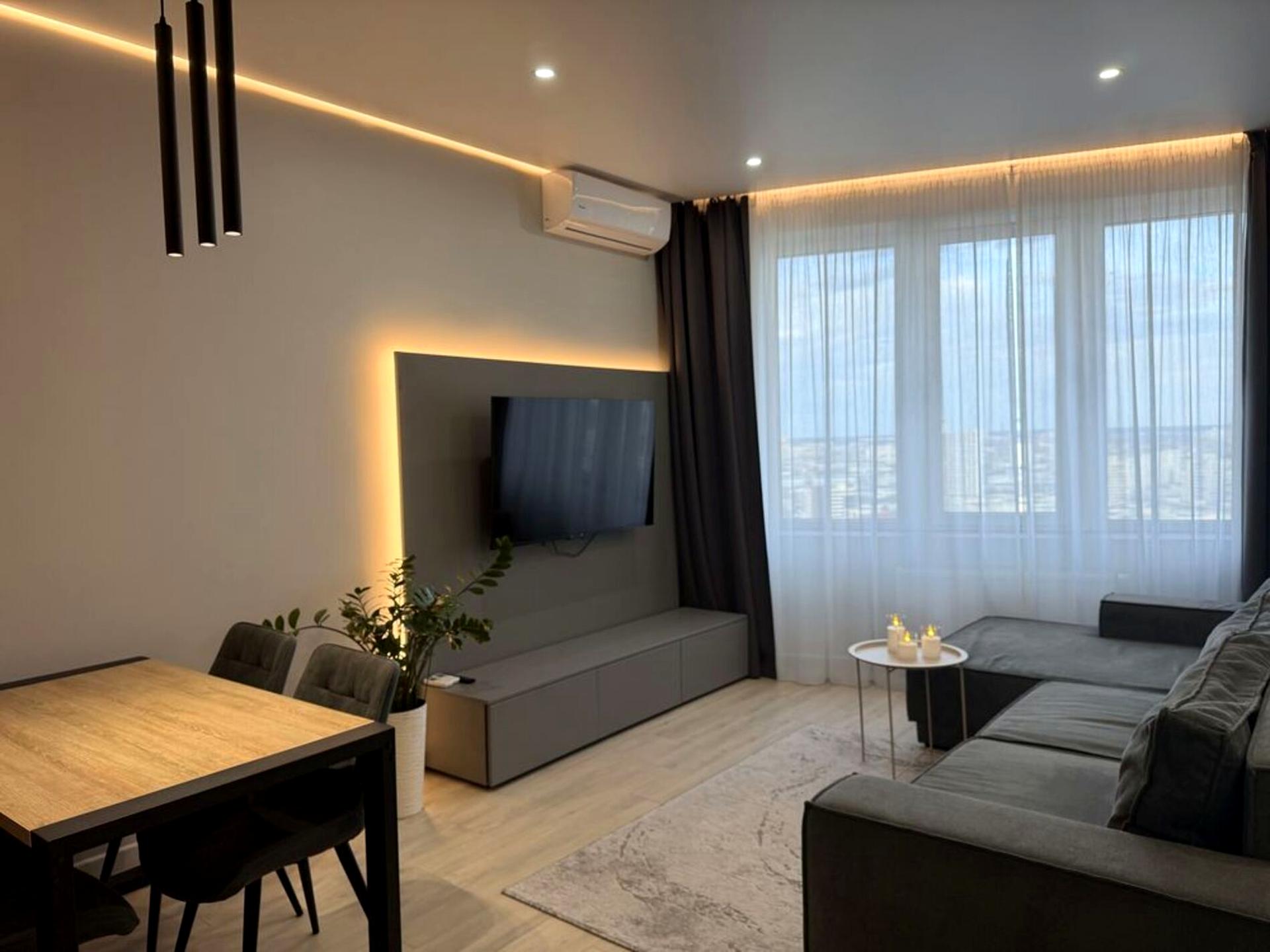 ЖК Сонячна Рівʼєра, площею 55 кв.м., розташована на 25 поверсі 30-ти поверхового будинку бізнес-класу.