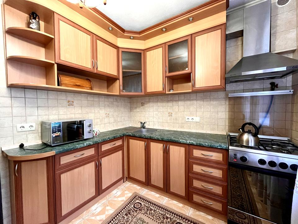 В квартирі є всі меблі , двоспальне ліжко, великий розкладний диван, шафи , вбудована кухня, ГАЗОВА ПЛИТА.