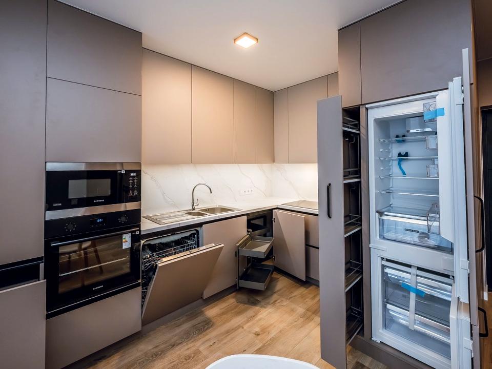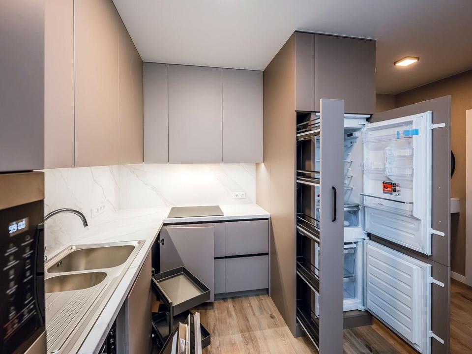 В квартире 1 комната, высота потолков 2.7 метра, Технологія будівництва - Цегляна, Тип будинку - Спец. проект. Газа нет, кухонная плита электрическая. Есть балкон. В квартире есть Телевизор, Кабельное ТВ, Утюг, Подогрев полов, Кондиционер, Стиральная машина, Сушильная машина, Ванна, Холодильник, Микроволновка, Посудомойная машина. Дом построен в 2023 году. Общее состояние квартиры - С ремонтом. Горячая вода - централизованная. Количество санузлов: 1. Интернет проводной (кабельный). Тип кухни - кухня-студия. Количество спален: 1. Инфраструктура территории: детская площадка, отделенная зона для выгула животных, спортивная площадка. Комиссия за услуги 50 %