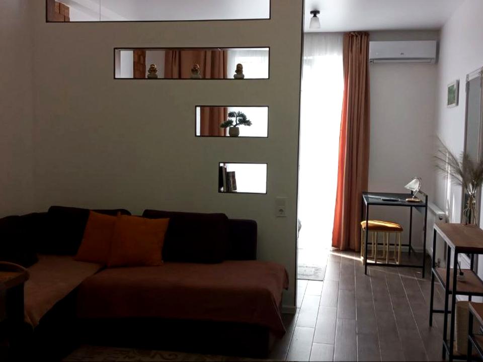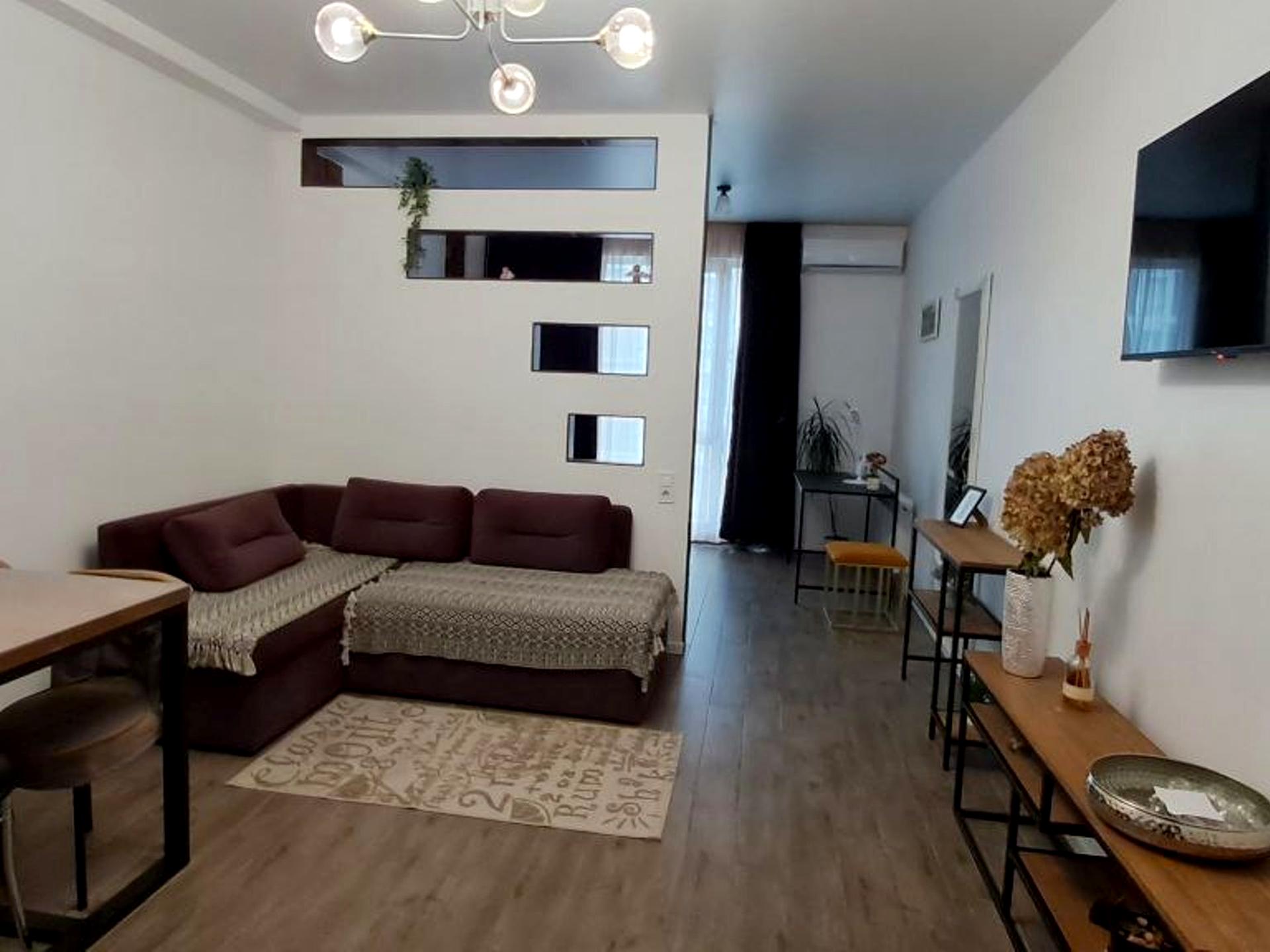 В квартире 1 комната, высота потолков 2.75 метра, Технологія будівництва - Монолітно-каркасна, Тип будинку - Спец. проект. Газа нет, кухонная плита электрическая. Балкона нет. В квартире есть Телевизор, Кондиционер, Стиральная машина, Душевая кабина, Холодильник, Микроволновка, Посуда. Дом построен в 2020 году. Общее состояние квартиры - С ремонтом. Безбарьерность: пандус, вход в дом на уровне земли. Горячая вода - электрический бойлер. Количество санузлов: 1. Интернет оптоволоконный. Работает без света - вода, отопление, интернет, лифт. Тип кухни - кухня-студия. Количество спален: 1. Есть подземный паркинг, доступный как укрытие. Инфраструктура территории: детская площадка, спортивная площадка. Комиссия за услуги 50 %