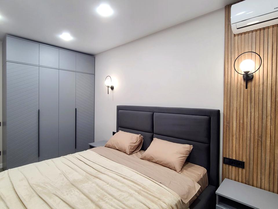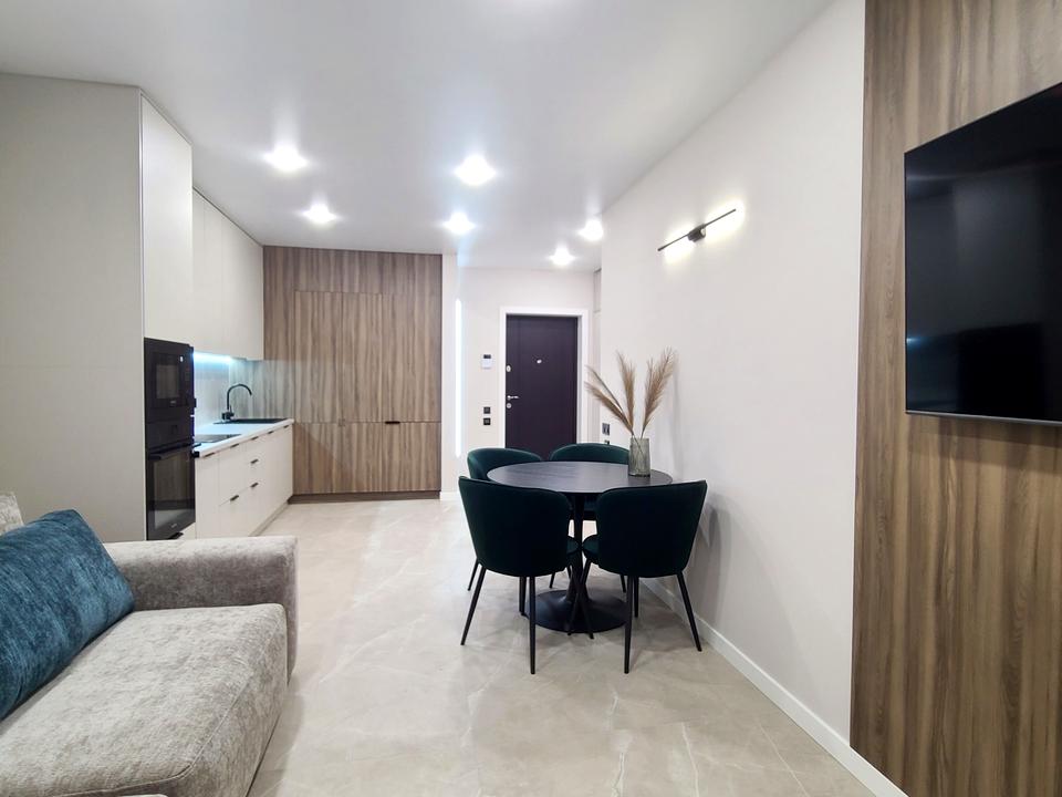 В квартире 2 комнаты, высота потолков 2.7 метра, Технологія будівництва - Монолітно-каркасна, Тип будинку - Спец. проект. Газа нет, кухонная плита электрическая. Есть балкон. В квартире есть Телевизор, Подогрев полов, Кондиционер, Стиральная машина, Сушильная машина, Душевая кабина, Холодильник, Микроволновка, Посудомойная машина. Дом построен в 2024 году. Общее состояние квартиры - С ремонтом. Безбарьерность: вход в дом на уровне земли. Горячая вода - электрический бойлер. Количество санузлов: 1. Интернет оптоволоконный. Работает без света - вода, отопление, интернет. Тип кухни - кухня-студия. Количество спален: 2. Нет подземного паркинга, доступного как укрытие. Инфраструктура территории: детская площадка, спортивная площадка, двор без авто. Комиссия за услуги 25 %