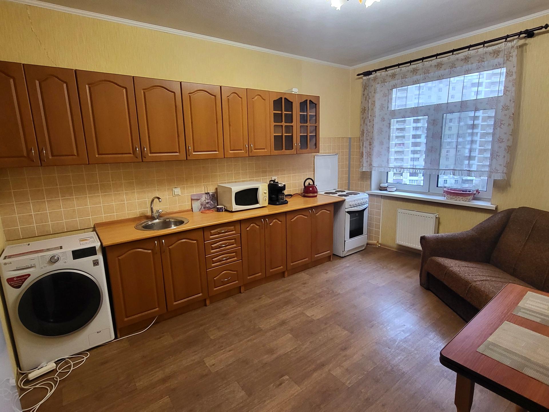 Простора квартира в елітному цегляному будинку. Закрита територія, наземний паркінг. Вхід на територію будинку по магнітному ключу. Консьерж, охорона. 46м загальної площі, кімната 20м, кухня 15м. Все необхідне для проживання: два розкладних дивана, два крісла, письмовий стіл, кухонні меблі, пральна машина, холодильник, кондиціонер,бойлер, електрична плита. Без балкона. Невелика гардеробна. Вікна виходять у двір. В будинку своя інфраструктура. Чудове місце розташування, поруч ТРЦ Піраміда, Паралель, кавярні, ресторани, медичні заклади, метро Позняки 600м, 5 хвилин пішки. Комісія 50%, є залогова сума. Розглянемо пару, можна з дитиною шкільного віку. Без домашніх тварин. Не співпрацюю з ріелторами.