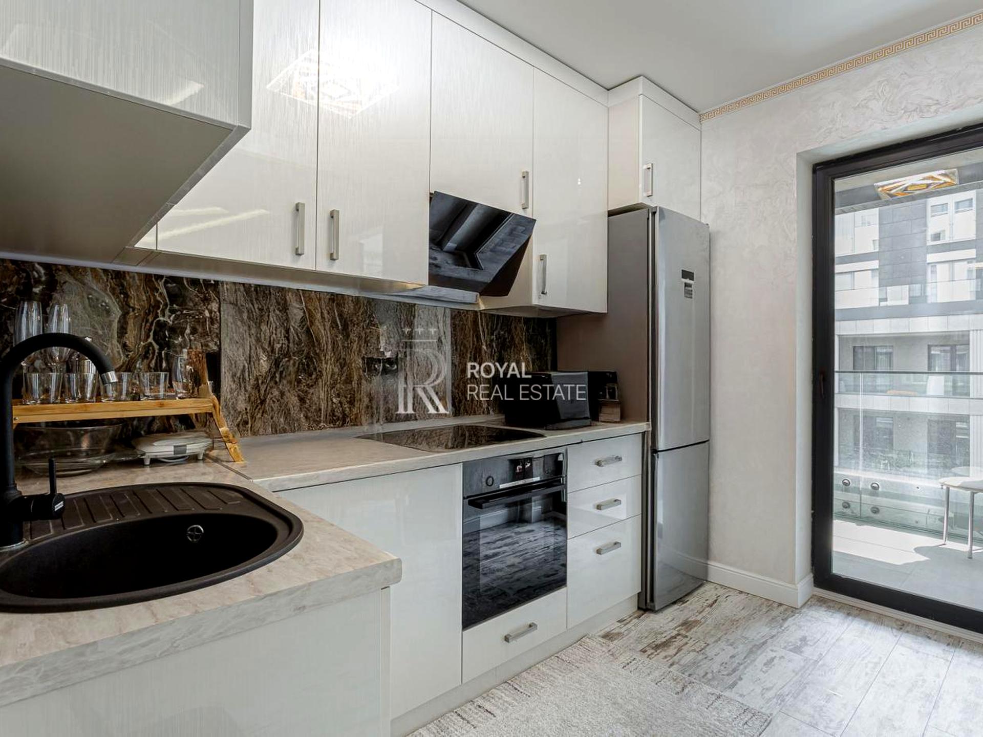 В квартире 1 комната, высота потолков 2.82 метра, Технологія будівництва - Монолітно-каркасна, Тип будинку - Спец. проект. Газа нет, кухонная плита электрическая. Есть балкон. В квартире есть Телевизор, Подогрев полов, Кондиционер, Стиральная машина, Душевая кабина, Холодильник, Посудомойная машина. Дом построен в 2019 году. Общее состояние квартиры - С ремонтом. Горячая вода - электрический бойлер. Количество санузлов: 1. Интернет проводной (кабельный). Тип кухни - кухня-студия. Количество спален: 1. Есть подземный паркинг, доступный как укрытие. Инфраструктура территории: детская площадка, спортивная площадка, отделенная зона для выгула животных. Комиссия за услуги 50 %
