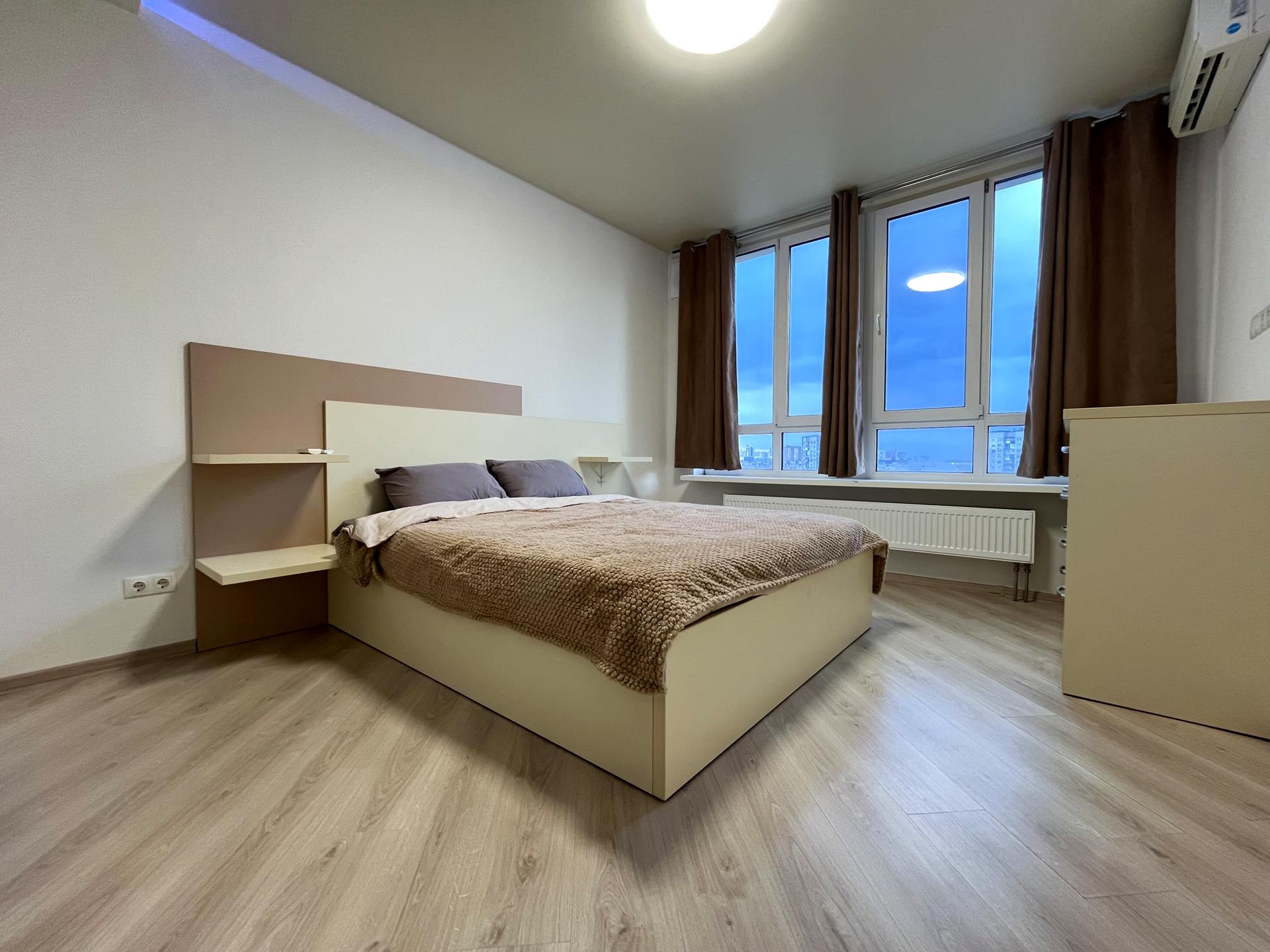 В квартире 3 комнаты, высота потолков 2.75 метра, Технологія будівництва - Монолітно-каркасна, Тип будинку - Спец. проект. Газа нет, кухонная плита электрическая. Есть балкон. В квартире есть Телевизор, Подогрев полов, Кондиционер, Стиральная машина, Ванна, Холодильник, Микроволновка, Посудомойная машина, Посуда. Дом построен в 2015 году. Общее состояние квартиры - С ремонтом. Горячая вода - электрический бойлер. Количество санузлов: 2. Интернет проводной (кабельный). Работает без света - вода, отопление, лифт. Тип кухни - отдельная кухня. Количество спален: 2. Есть подземный паркинг, доступный как укрытие. Инфраструктура территории: детская площадка, спортивная площадка, двор без авто. Комиссия за услуги 50 %