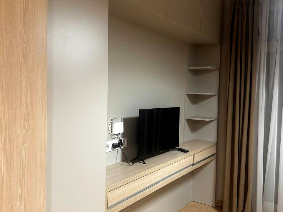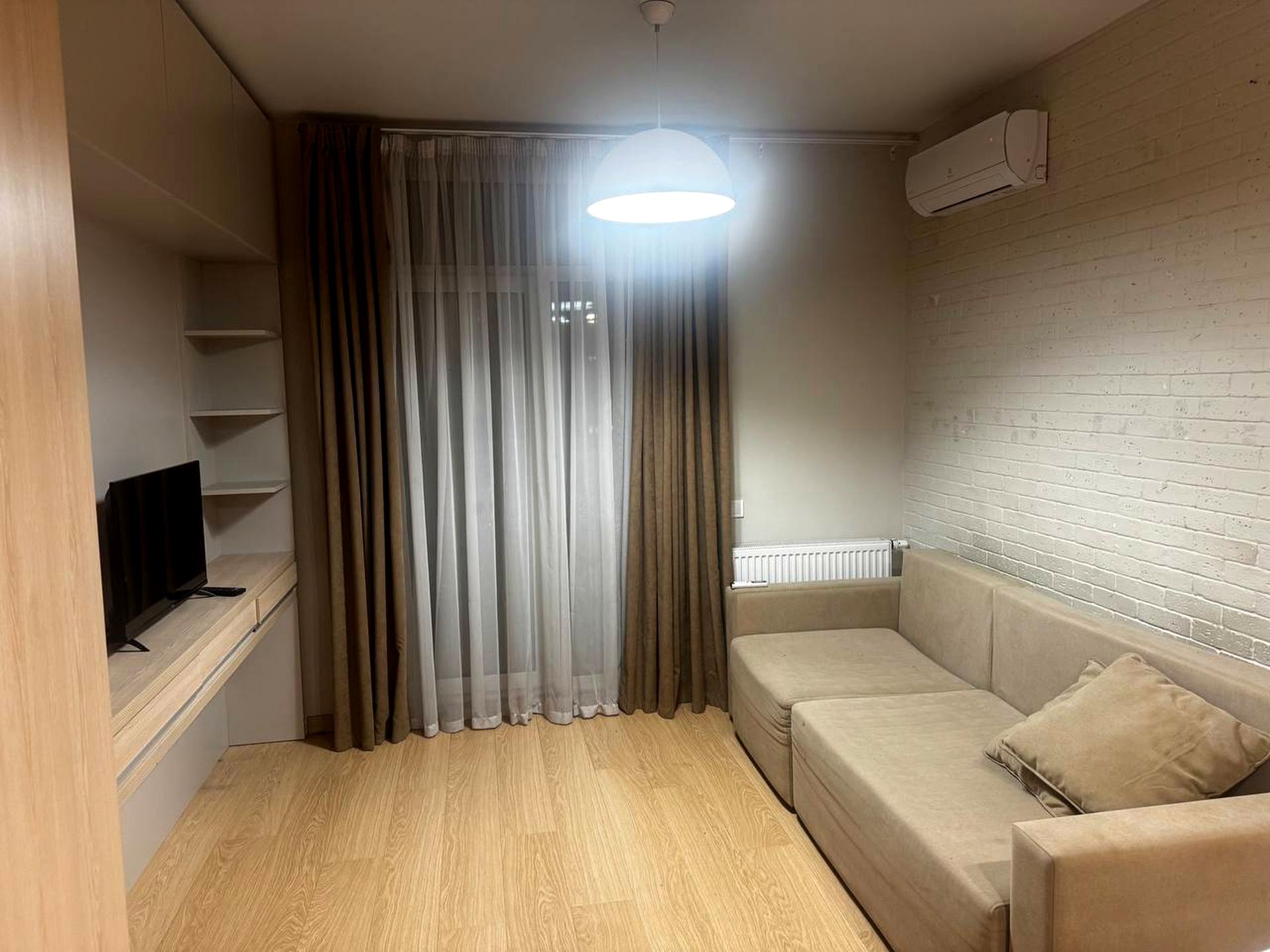 Студія з сучасним та якісним ремонтом ремонтом. Присутні: розкладний диван, кухня, багато місця для зберігання речей за рахунок вбудованих шаф, кондиціонер, smart-tv, бойлер та все інше, що бачите на фото.