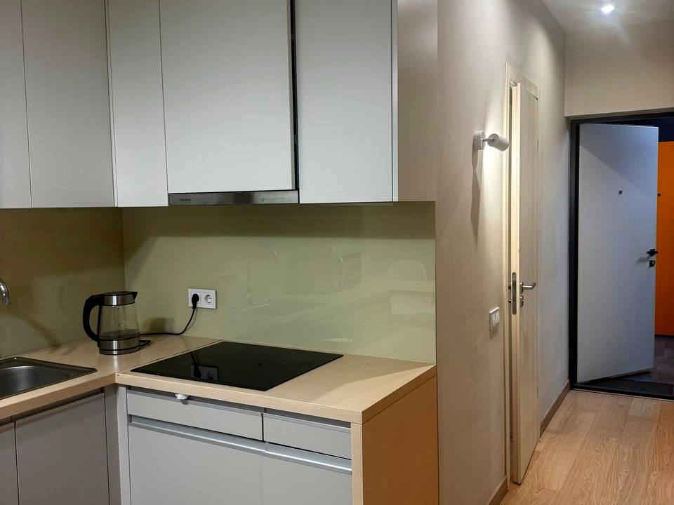 В квартире 1 комната, высота потолков 2.7 метра, Технологія будівництва - Цегляна, Тип будинку - Спец. проект. Кухонная плита электрическая. Дом построен в 2019 году. Общее состояние квартиры - С ремонтом. Горячая вода - электрический бойлер. Количество санузлов: 1. Интернет оптоволоконный. Работает без света - вода, отопление, интернет, лифт. Тип кухни - кухня-студия. Комиссия за услуги 50 %