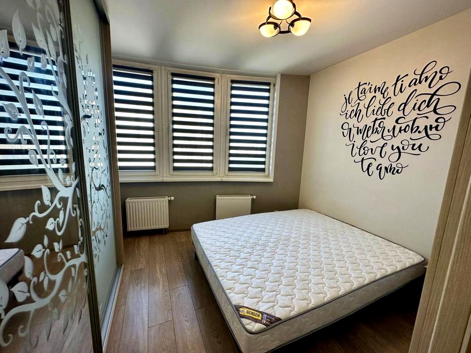 Якісний ремонт. Укомплентована технікою та меблями: бойлер, духова піч, мікрохвильова піч, пральна машина, плита, витяжка, телевізор, холодильник. Спальні місця: двомісне ліжко 160х200 з ортопедичним матрацом та розкладний кутовий диван.