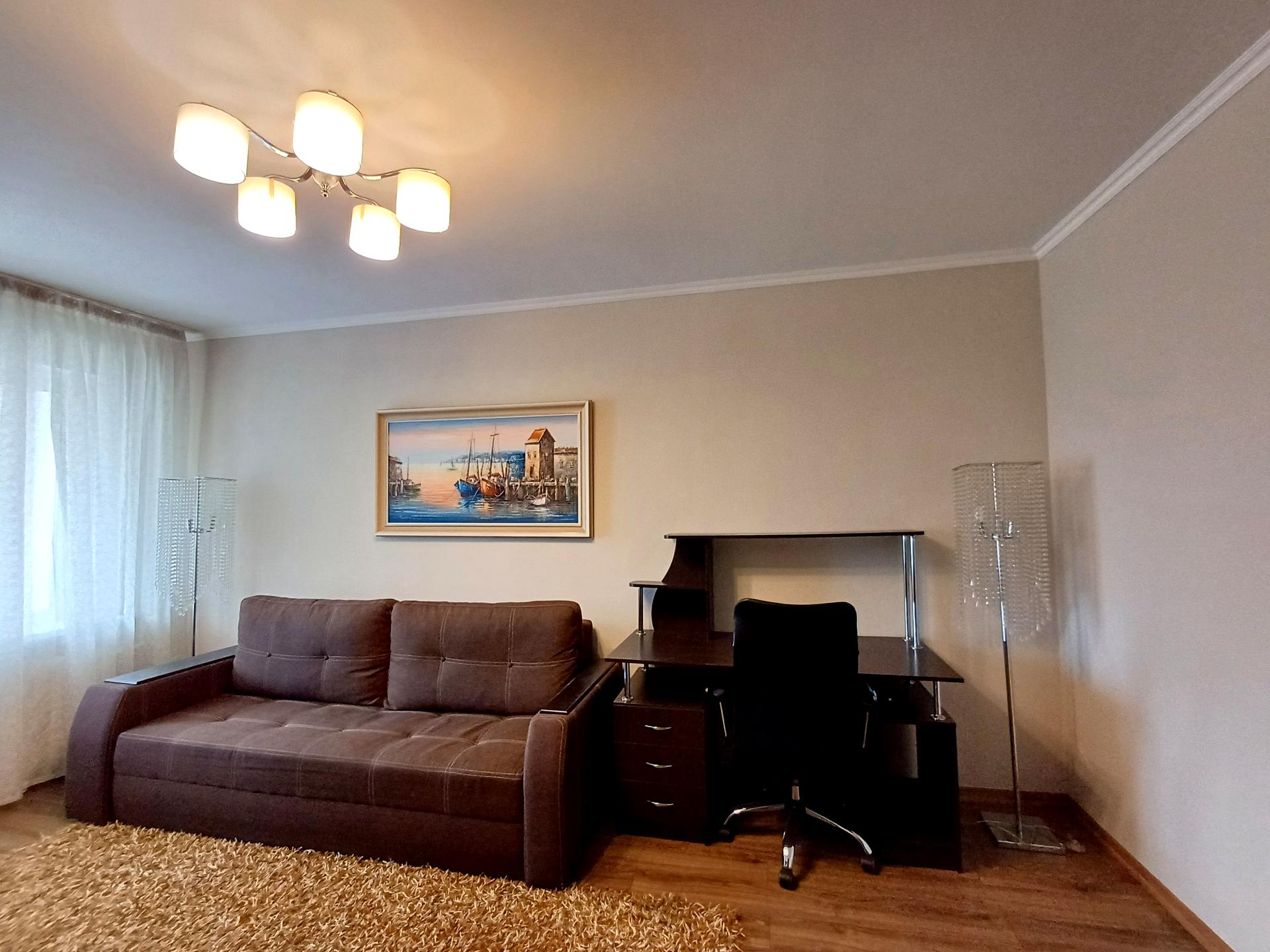 В квартире 2 комнаты, Технологія будівництва - Утеплена панель. Планировка комнат Раздельная. Есть балкон. В квартире есть Телевизор, Спутниковое ТВ, Кондиционер, Стиральная машина, Холодильник. Общее состояние квартиры - С ремонтом. Горячая вода - централизованная. Количество санузлов: 1. Интернет оптоволоконный. Работает без света - вода, отопление, интернет, лифт. Тип кухни - отдельная кухня. Количество спален: 2. Инфраструктура территории: детская площадка, спортивная площадка. Комиссия за услуги 50 %