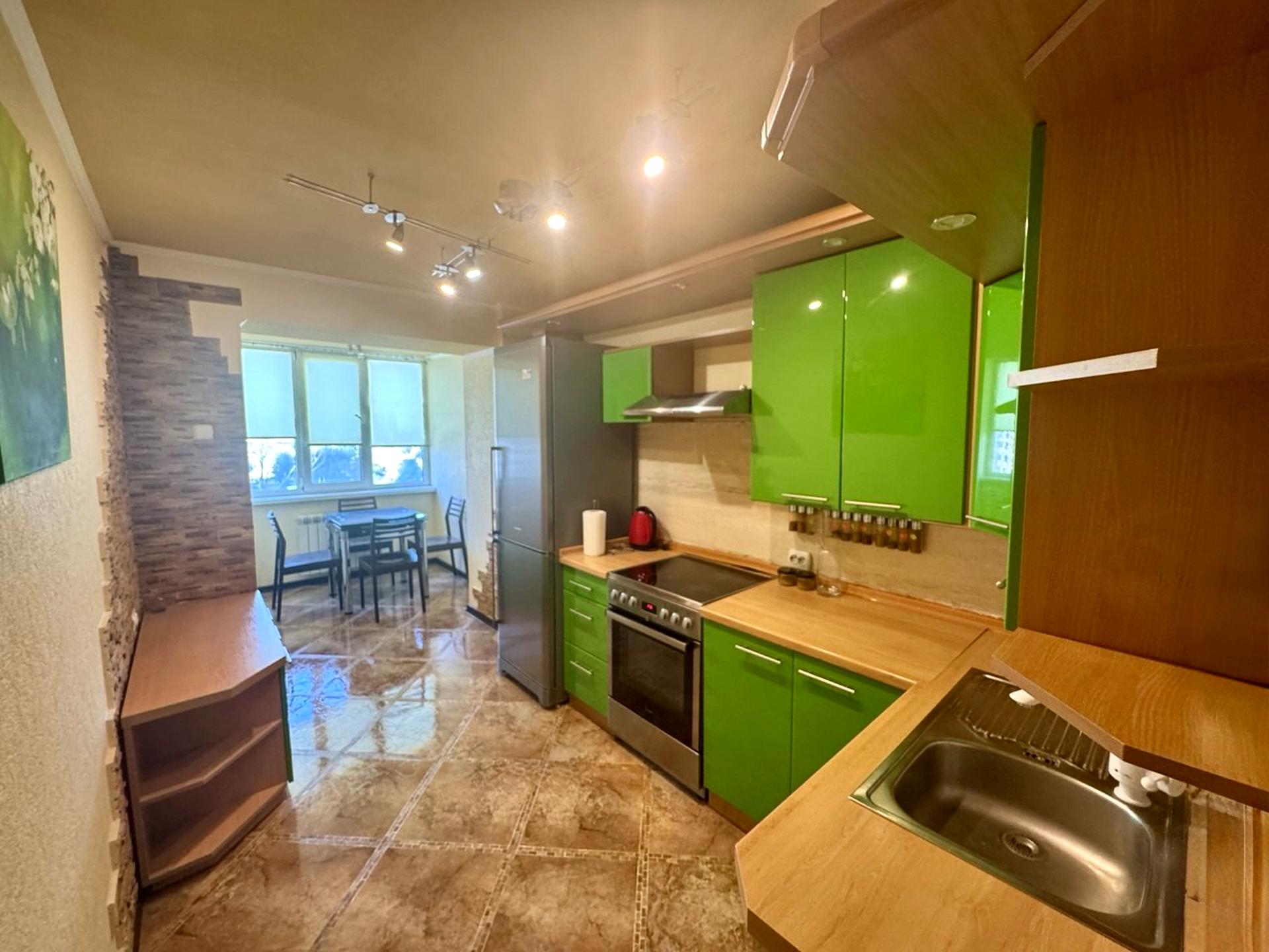 В квартирі створено ідеальні умови для комфортного життя: вбудована кухня, варильна поверхня, духова шафа, холодильник, обідній стіл зі стільцями. В кімнаті розкладний диван, розкладне крісло, робочий стіл з кріслом, Smart TV, кондиціонер. Санвузол сумісний, ванна, бойлер, пральна машинка. В коридорі велика гардеробна в якій можна розмістити всі речі.