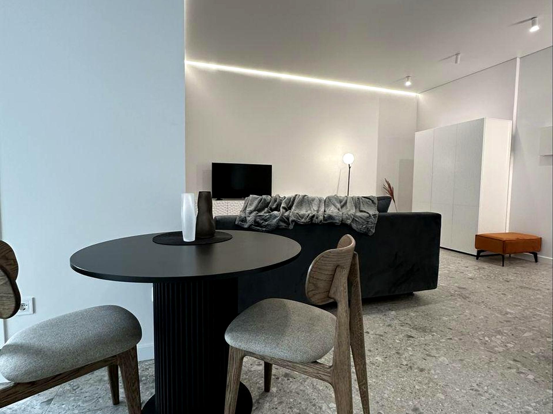 Повна комплектація квартири: підігрів підлоги, посудомийна машина, прально-сушильна машина, двоспальне ліжко з ортопедичним матрацом, зона відпочинку з розкладним диваном, 2 smartTV, місце для роботи, wifi, система кондиціонування, бойлер з режимом швидкого нагріву, посуд, постільна білизна.