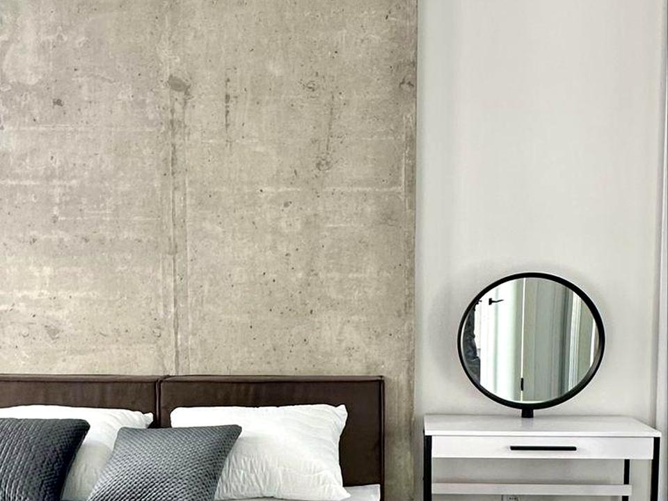 Дизайн в стилі лофт мінімалізм з використанням якісних матеріалів. Планування: спальня, кухня-вітальня, балкон, ванна кімната.