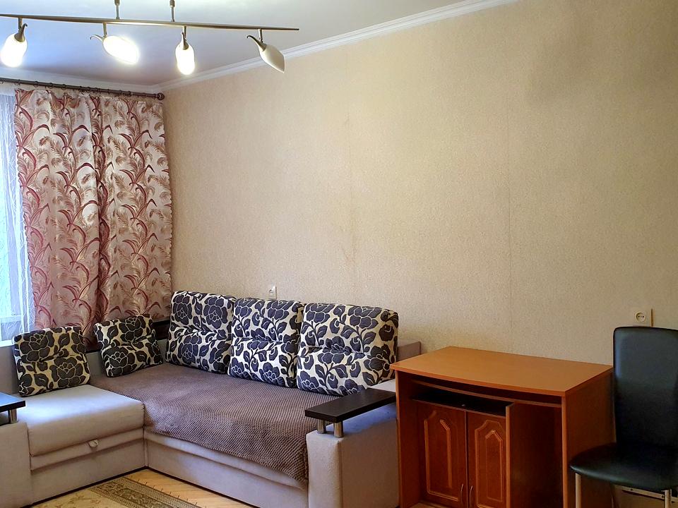 В квартире 1 комната, высота потолков 2.5 метра, Технологія будівництва - Цегляна, Тип будинку - Гостинка. Есть газ, кухонная плита газовая. Балкона нет. В квартире есть Кондиционер, Стиральная машина, Душевая кабина, Холодильник, Посуда. Дом построен в 1977 году. Общее состояние квартиры - С ремонтом. Безбарьерность: вход в дом на уровне земли. Горячая вода - электрический бойлер. Количество санузлов: 1. Интернет проводной (кабельный). Работает без света - вода, газ, отопление. Тип кухни - отдельная кухня. Количество спален: 1. Нет подземного паркинга, доступного как укрытие. Инфраструктура территории: детская площадка, спортивная площадка. Комиссия за услуги 50 %