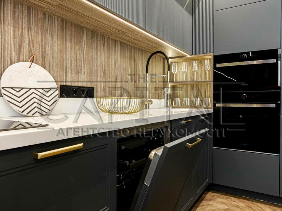Квартира вже укомплектована стильними меблями, виготовленими за індивідуальним проектом. Все необхідне для комфортного проживання – в наявності. Сантехніка Villeroy & Boch