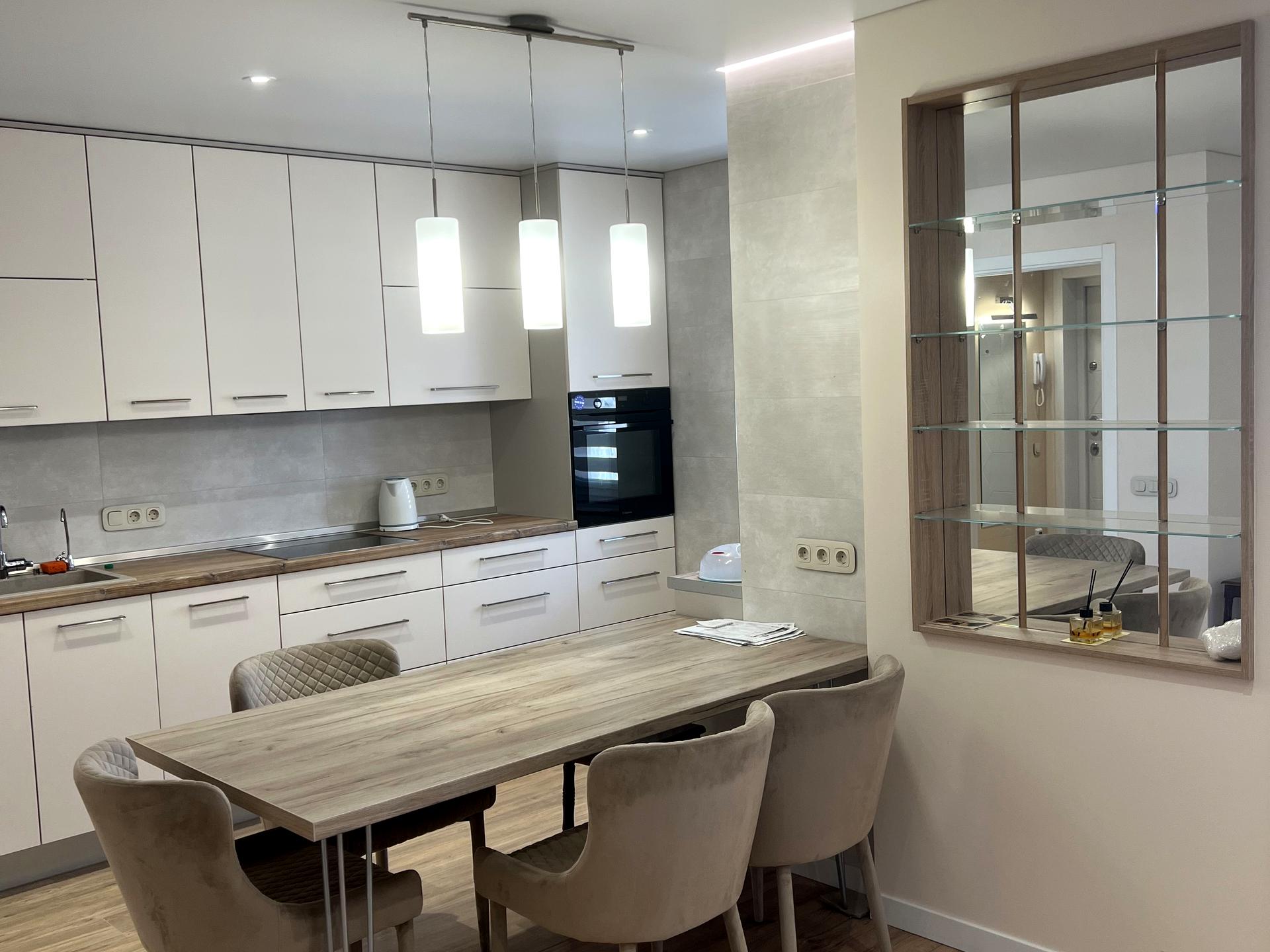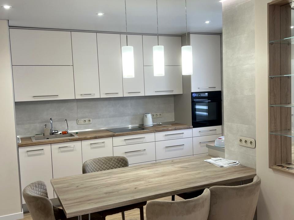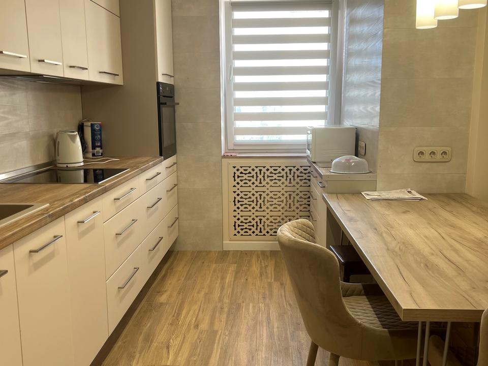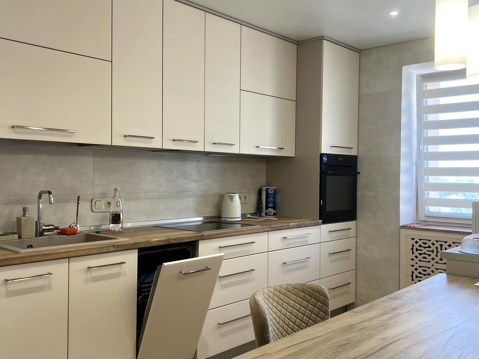 В квартирі зроблений капітальний якісний ремонт, замінені всі труби , повністю замінена проводка, лічильники . На кухні, в коридорі , у ванній кімнаті та на балконі зроблена тепла підлога. Всі меблі та техніка що на фото лишаються . В кожній кімнаті великі шафи-купе і також дві шафи в коридорі. Ремонт робився для себе в кінці 2021 року .
