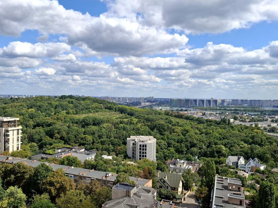 Из окон открываются захватывающие виды на Печерск, Ботанический сад, Левый берег, Осокорки и Багринову гору.