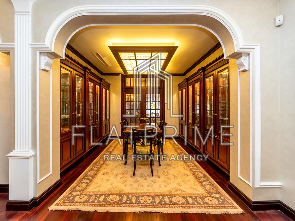 Квартира продається з вишуканими дорогими меблями відомих світових виробників, укомплектованою кухнею з вбудованою технікою відомих європейських брендів (два холодильники, посудомийна машина, духовка, мікрохвильова піч). Якісний ремонт: вікна , італійська плитка ручної роботи, двері з натурального дуба, дорогий паркет червоного дерева, камін з мармуровим порталом, кухонні меблі з натурального дерева з майстерно виконаним ручним різьбленням, стільниці та підвіконня з каменю, повністю облаштовані гардеробні кімнати.