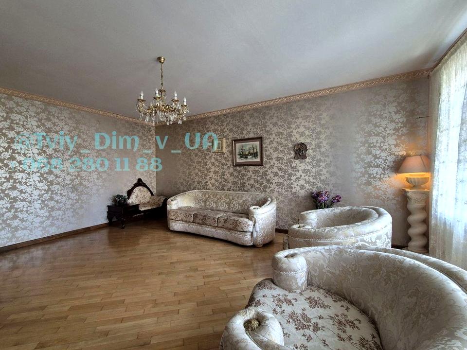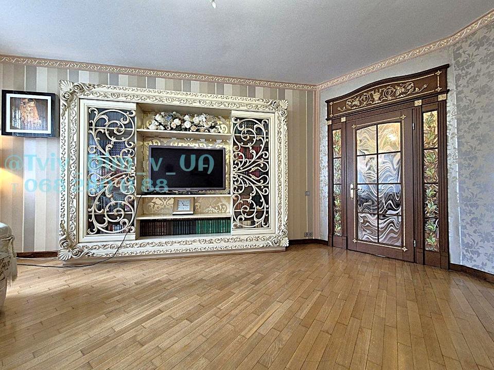 Квартира з просторим холом, має велику вітальню, спальню з балконом, кабінет, кухню- столову, два санвузли, коридор. Оздоблена в неокласичному стилі з елементами модерну. Обладнана меблями з натурального дерева та необхідною для сучасного комфорту технікою. Централізоване опалення, тепло взимку, є бойлер для підігріву води, кондиціонери, пральна та посудомийна машини, вбудований холодильник.