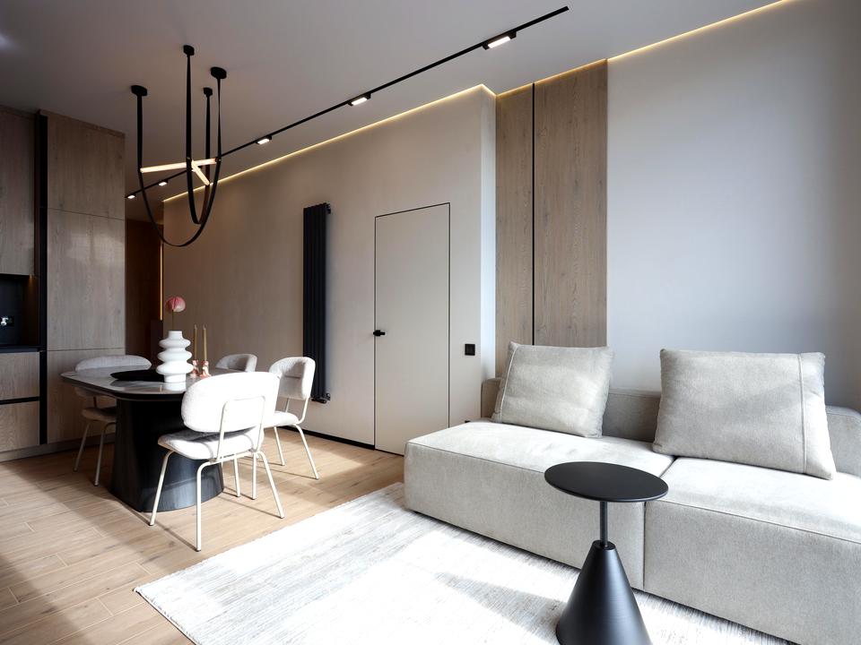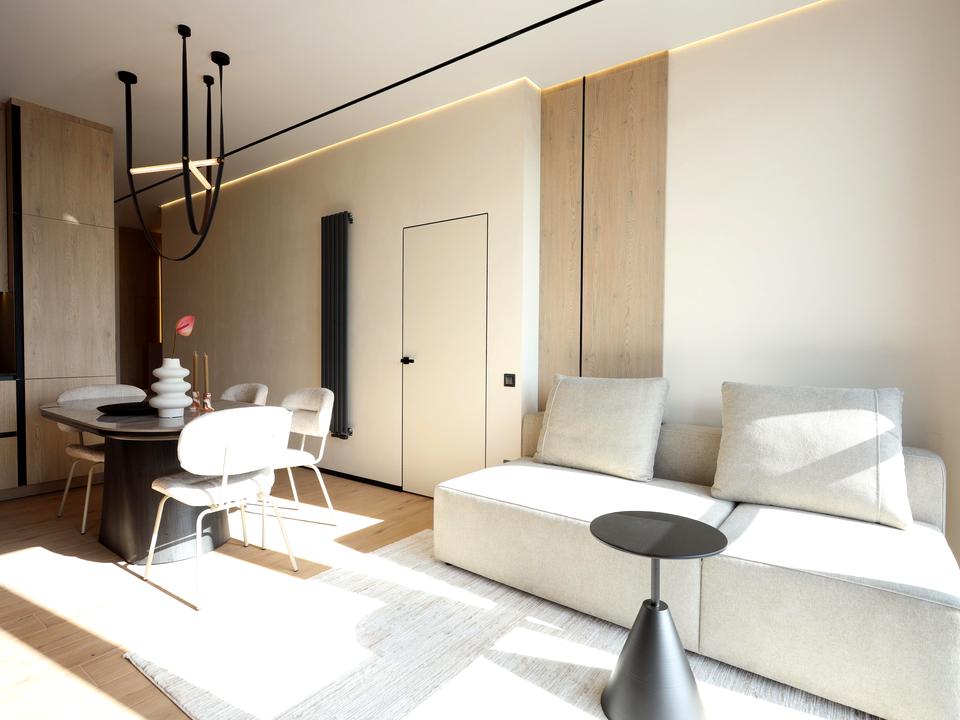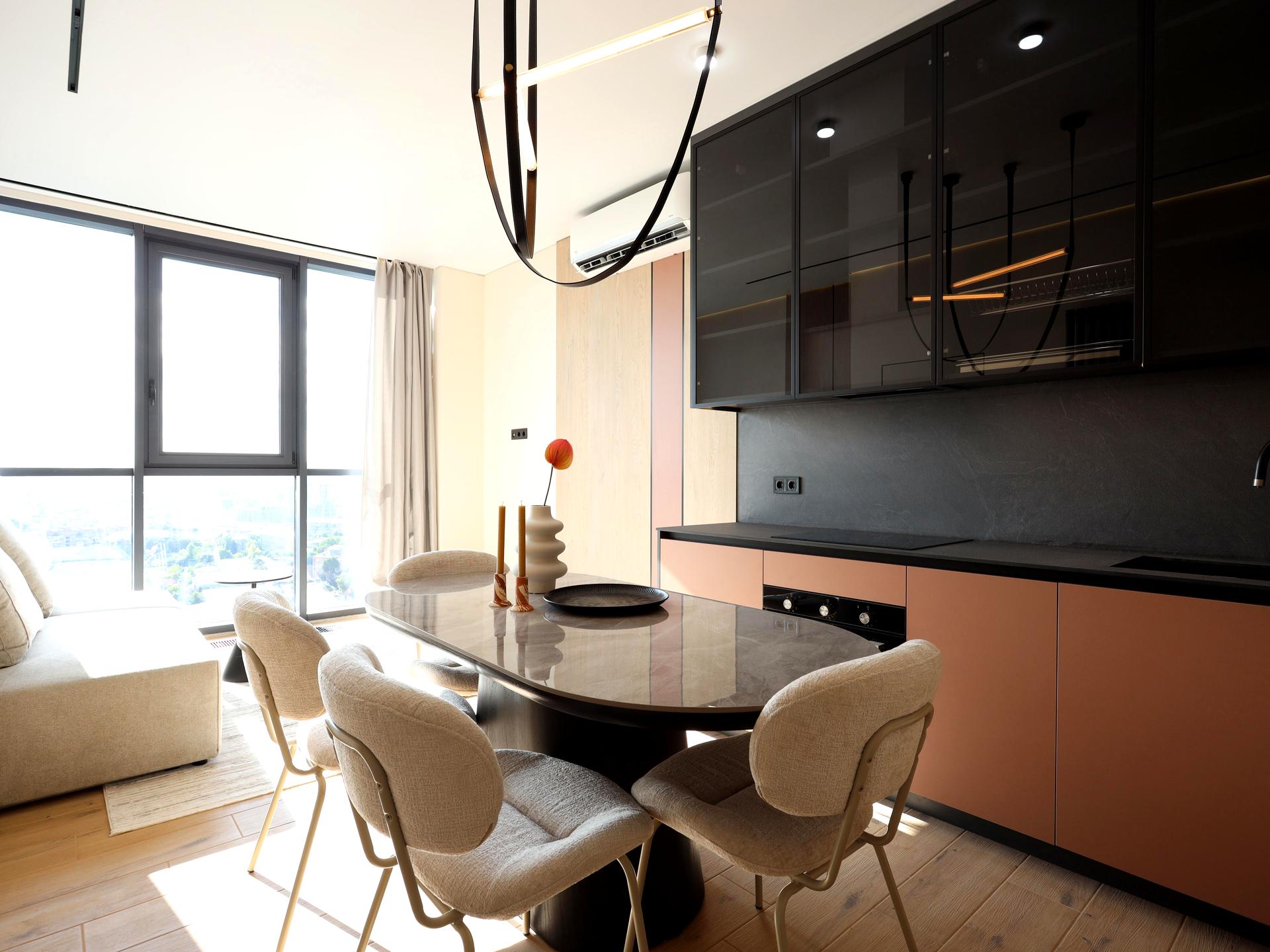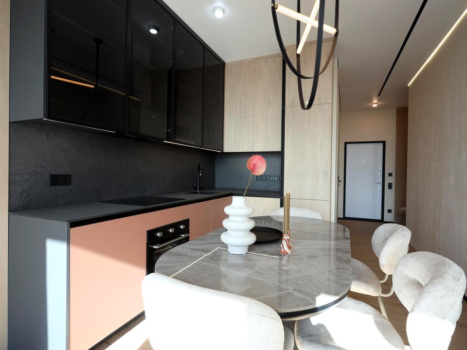 У квартирі виконано дизайнерський ремонт з використанням високоякісних матеріалів, сучасних технічних рішень та автоматизації.
