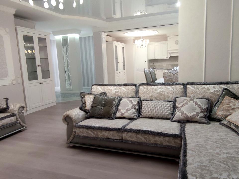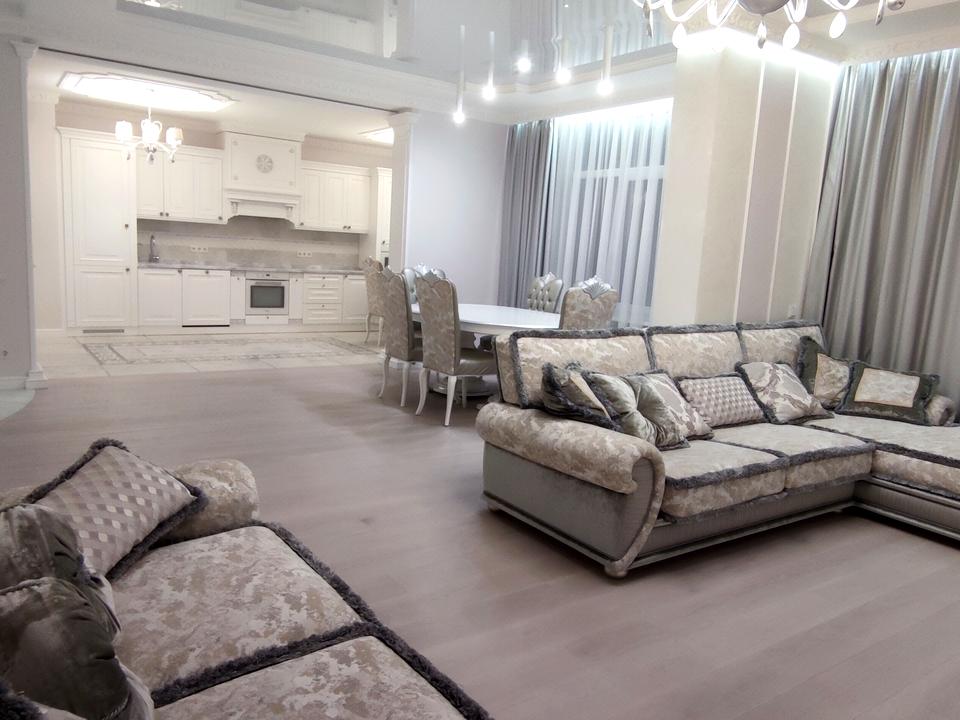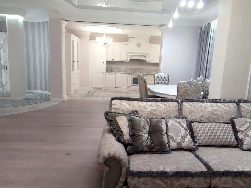 Отдельная квартира, Дом Введено в эксплуатацию - Бетонно монолитный, в квартире 5 комнат, высота потолков 3 метра. Вид из окон во двор, на город, на парк. Квартира стандартная, планировка комнат Раздельная. Газа нет. Горячая вода - электрический бойлер. Отопление центральное. В квартире 2 совместных санузла, туалет/ванна. Есть сантехника. Входная дверь бронированная. Покрытие полов, есть подогрев полов. Окна металлопластиковые, новые. В квартире есть Телевизор, Шкаф, Холодильник, Кровать, Стиральная машина, Кондиционер, Счетчики, Душевая кабина, Посудомоечная машина. Дом построен в 2016 году. Общее состояние квартиры - Дизайнерский ремонт. Охрана, автопарковка. Рядом есть остановки, детсад, школа, развлекательные заведения, супермаркет, парк, речка/озеро, лес. Торг уместен, Свободна. Интернет оптоволоконный. Работает без света - вода, отопление, интернет, лифт. Без комиссии