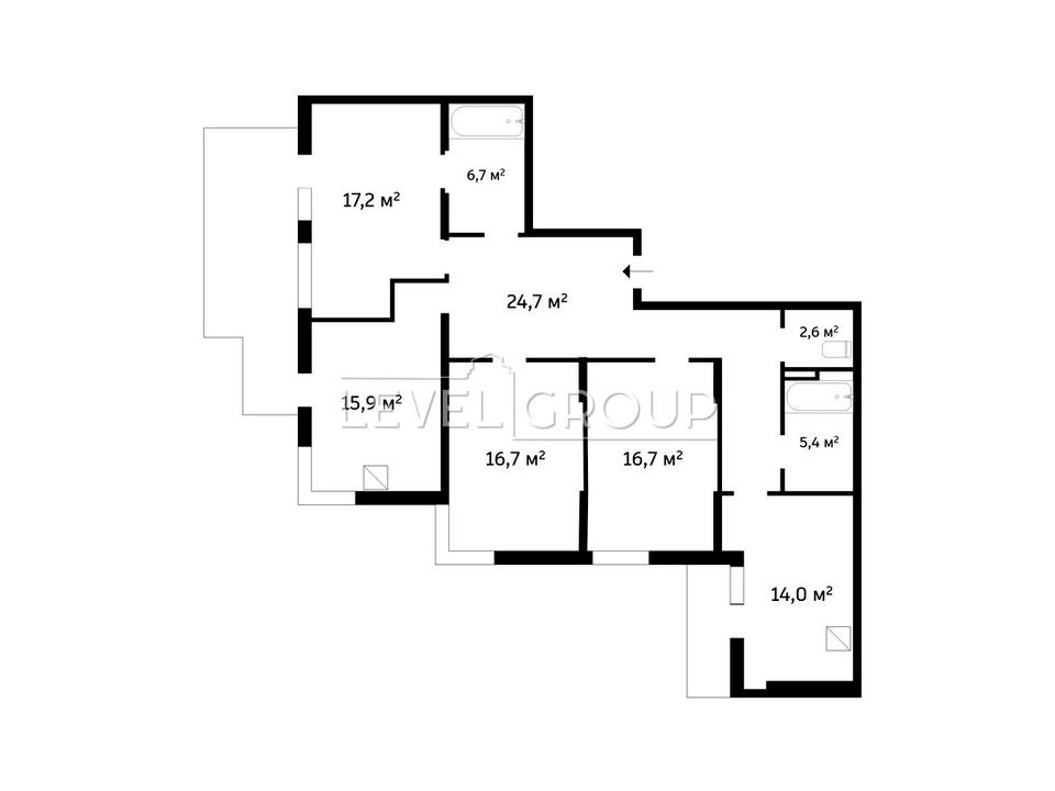 Площа квартири – 126 м², поверх 18 з 23. Стан – без ремонту, що дозволяє втілити власний дизайн-проєкт.