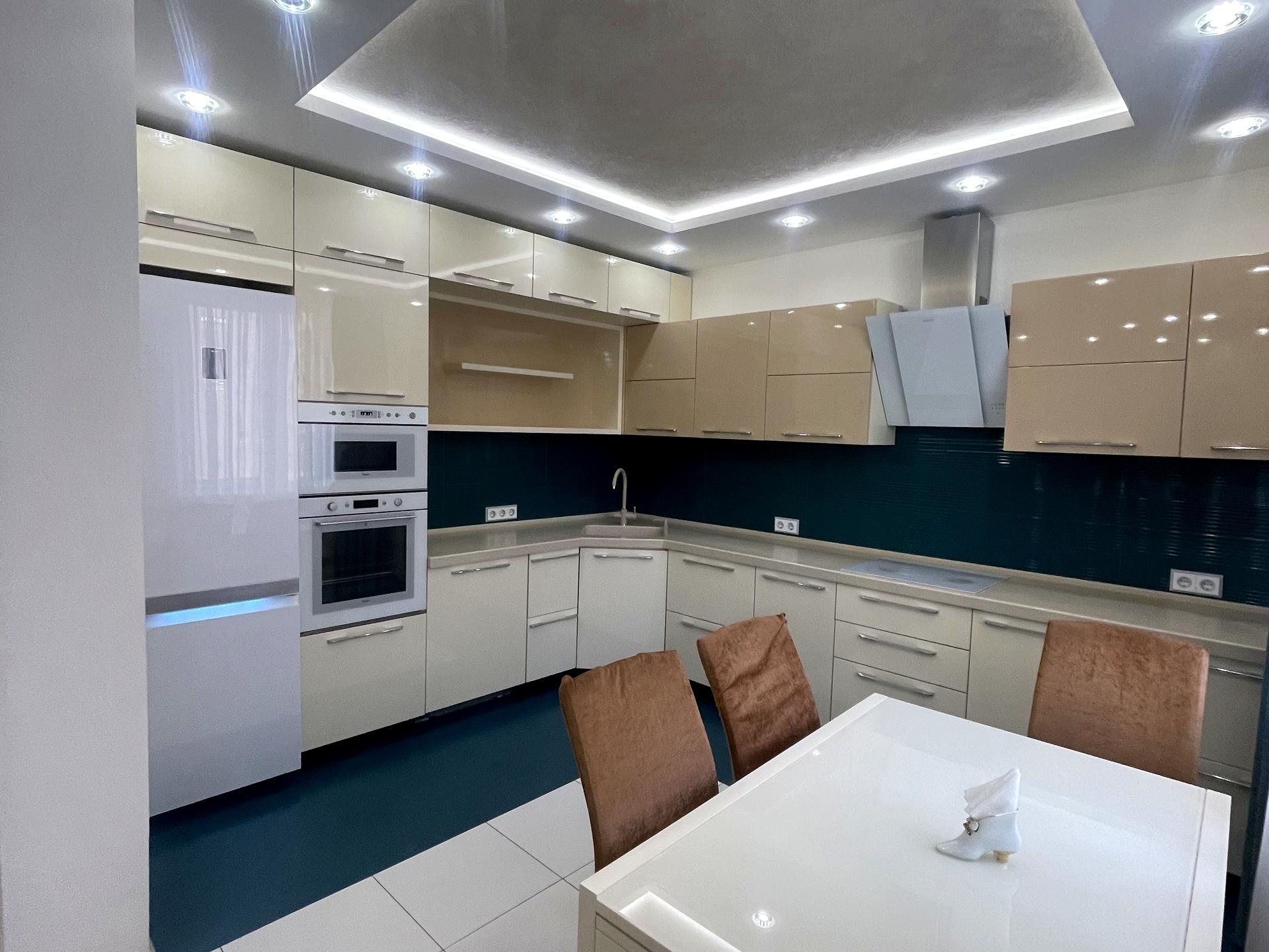 Вся квартира - світла та затишна, обставлена меблями та технікою, багато шаф. Дуже зручна кухня.