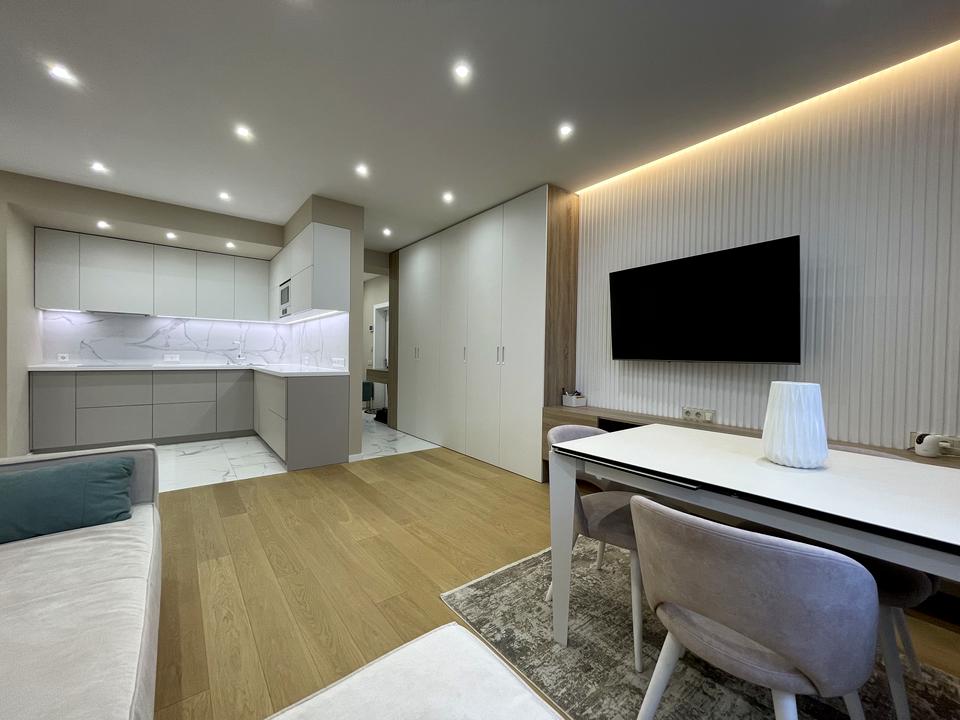 Зручне планування 2 окремі кімнати та кухня вітальня. Багато вбудованих шаф, та окрема гардеробна в спальні.