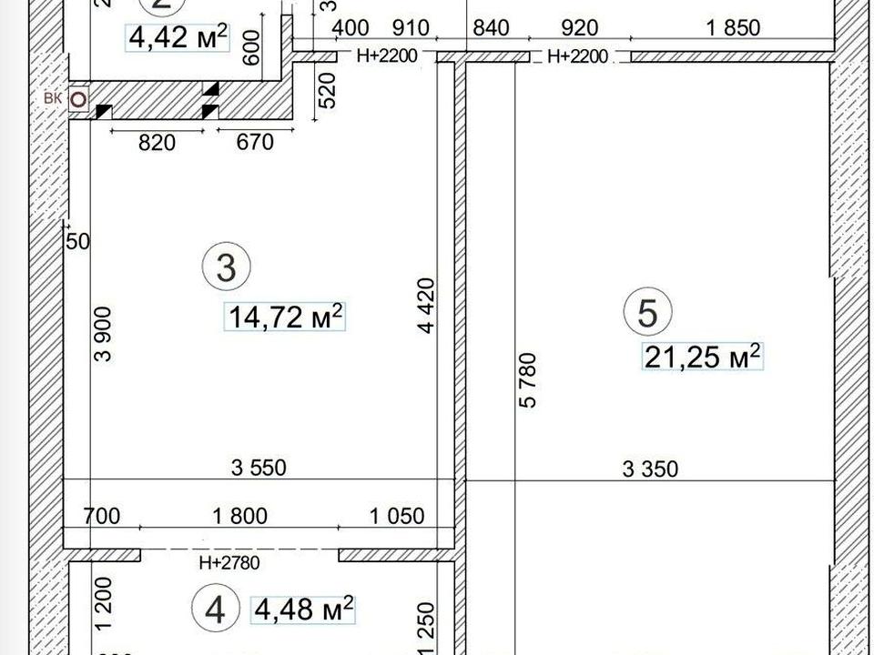 Загальна площа - 55,8м2