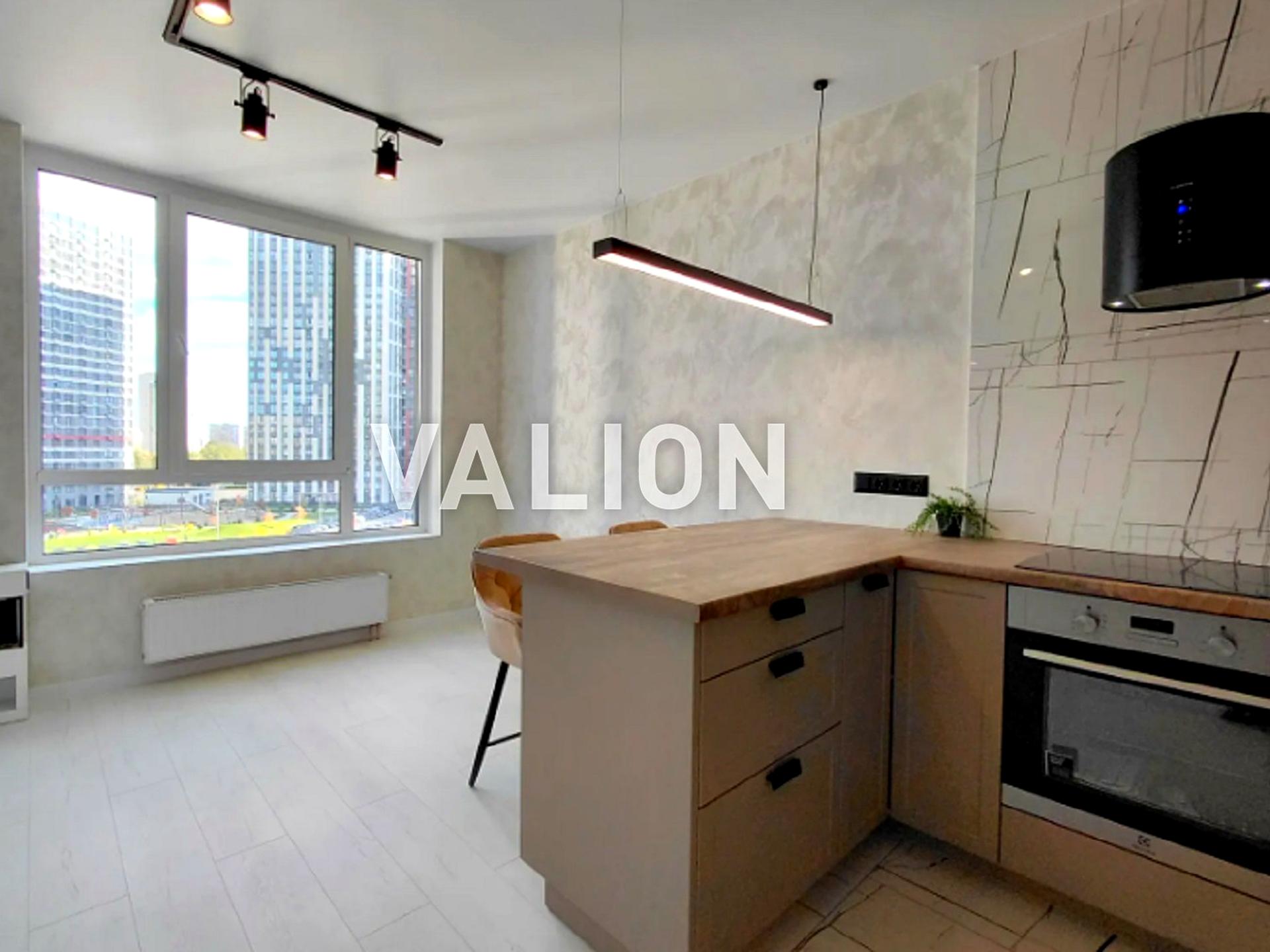 Функціональне планування: кухня-вітальня + окрема спальня. Панорамні вікна з видом у двір. Повна комплектація меблями та технікою (вбудована кухня, посудомийна машина, бойлер, кондиціонер). Тепла підлога, індивідуальні лічильники на тепло. Сучасний ЖК з охороною та закритим двором.