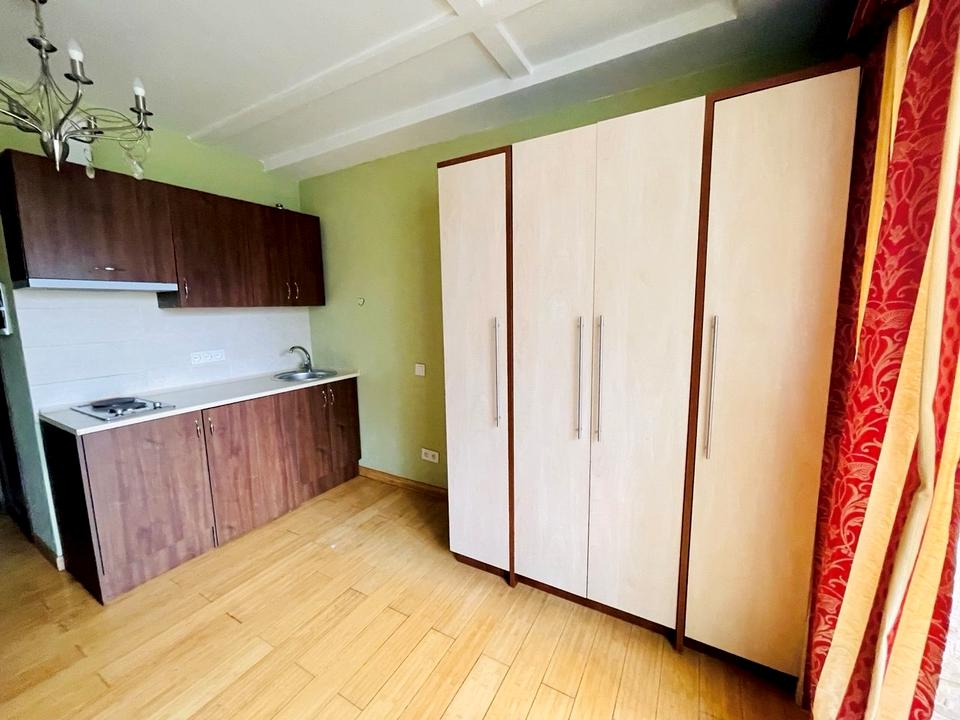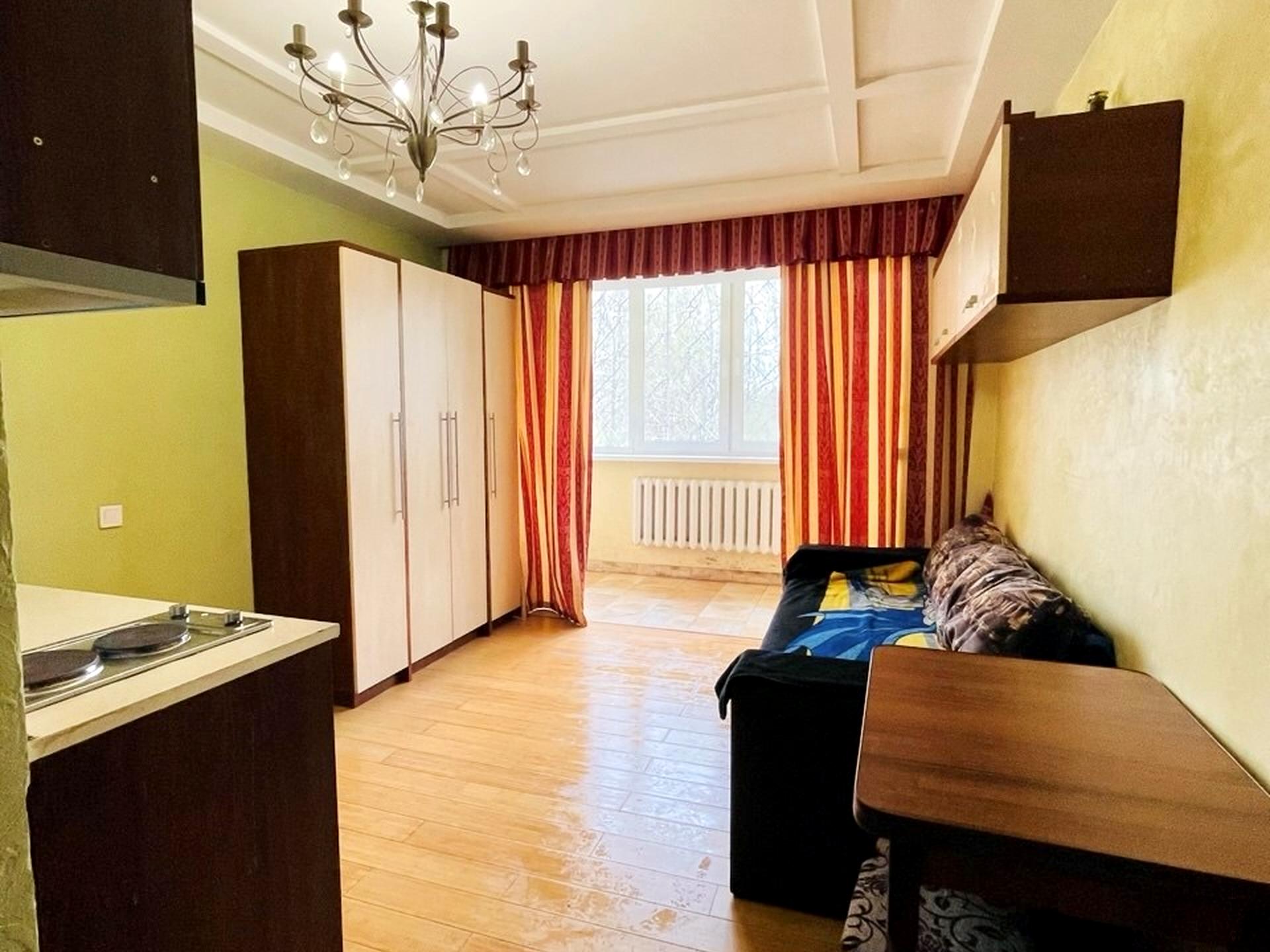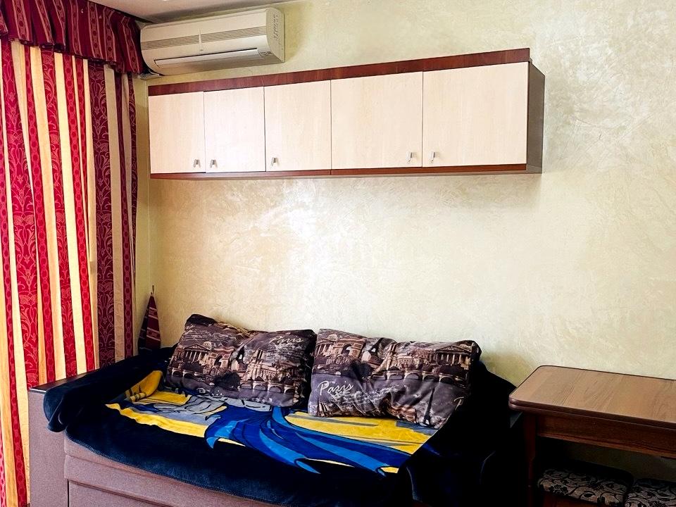 Отдельная квартира, в квартире 1 комната, высота потолков 2.7 метра, Технологія будівництва - Панельна, Тип будинку - Спец. проект. Вид из окон во двор, на парк. Планировка комнат Студия. Газа нет. Горячая вода - электрический бойлер. Отопление центральное. Совместный санузел, туалет/душ. Есть сантехника. Входная дверь деревянная. Покрытие полов, подогрева полов нет. Есть балкон. Окна металлопластиковые, в нормальном состоянии. В квартире есть Шкаф, Холодильник, Кровать, Стиральная машина, Кондиционер, Счетчики, Душевая кабина. Общее состояние квартиры - С ремонтом. Рядом есть школа, детсад, остановки, развлекательные заведения, супермаркет, парк. Работает без света - вода. Комиссия за услуги 5 %